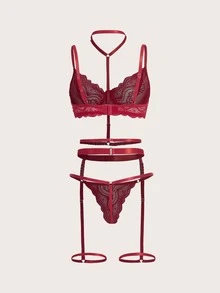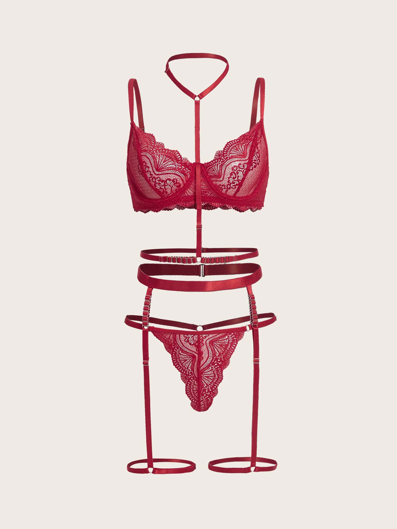 3 piezas Set de lencería con encaje vinculado con aro con liga