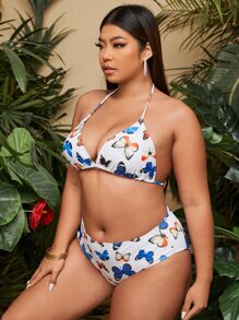 3 Paquetes Conjunto De Bikini Halter Con Estampado De Mariposa De Talla Grande Y Falda De Playa Verano Playa