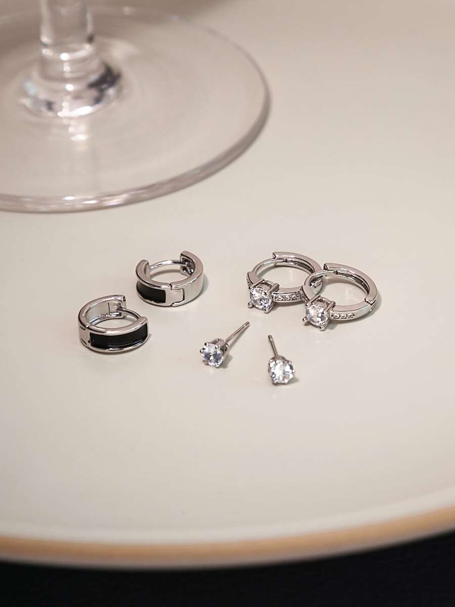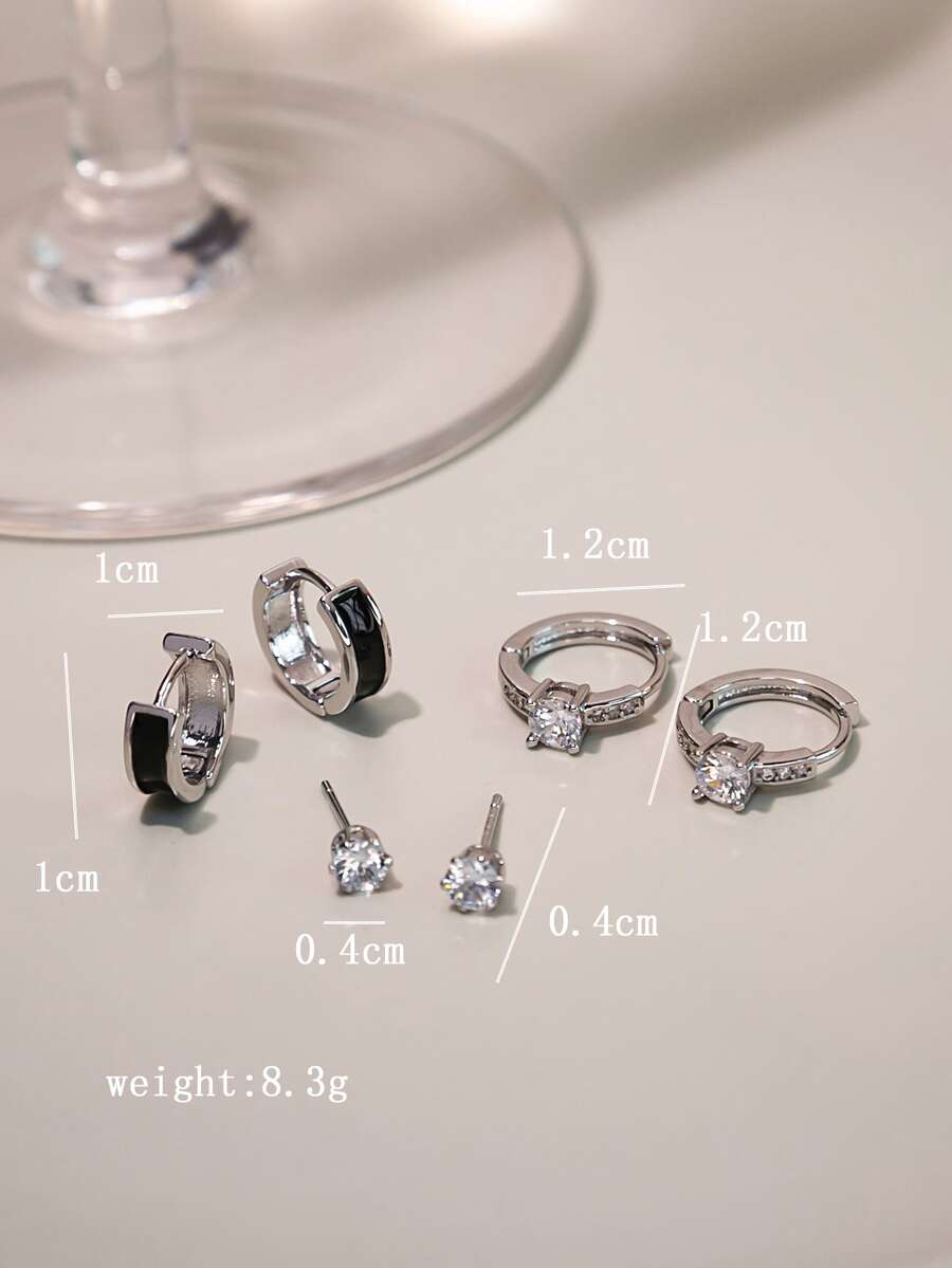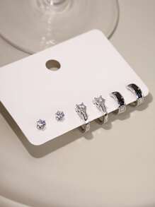 3 pares Pendientes con diseño de diamante de imitación