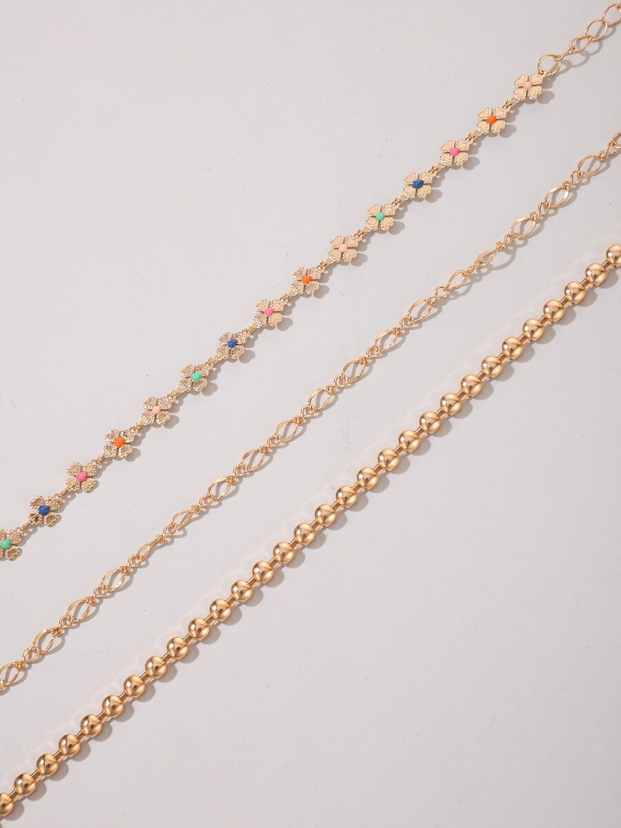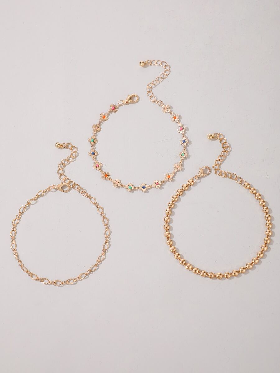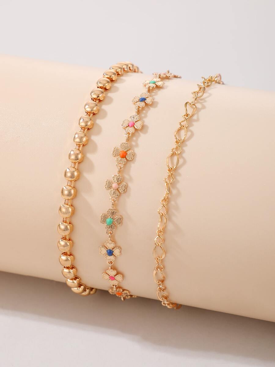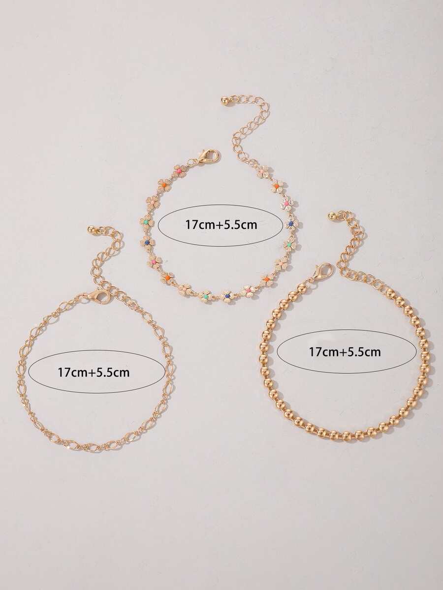 3 piezas Pulsera flor & con diseño de cuenta