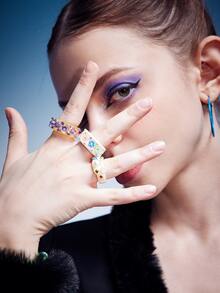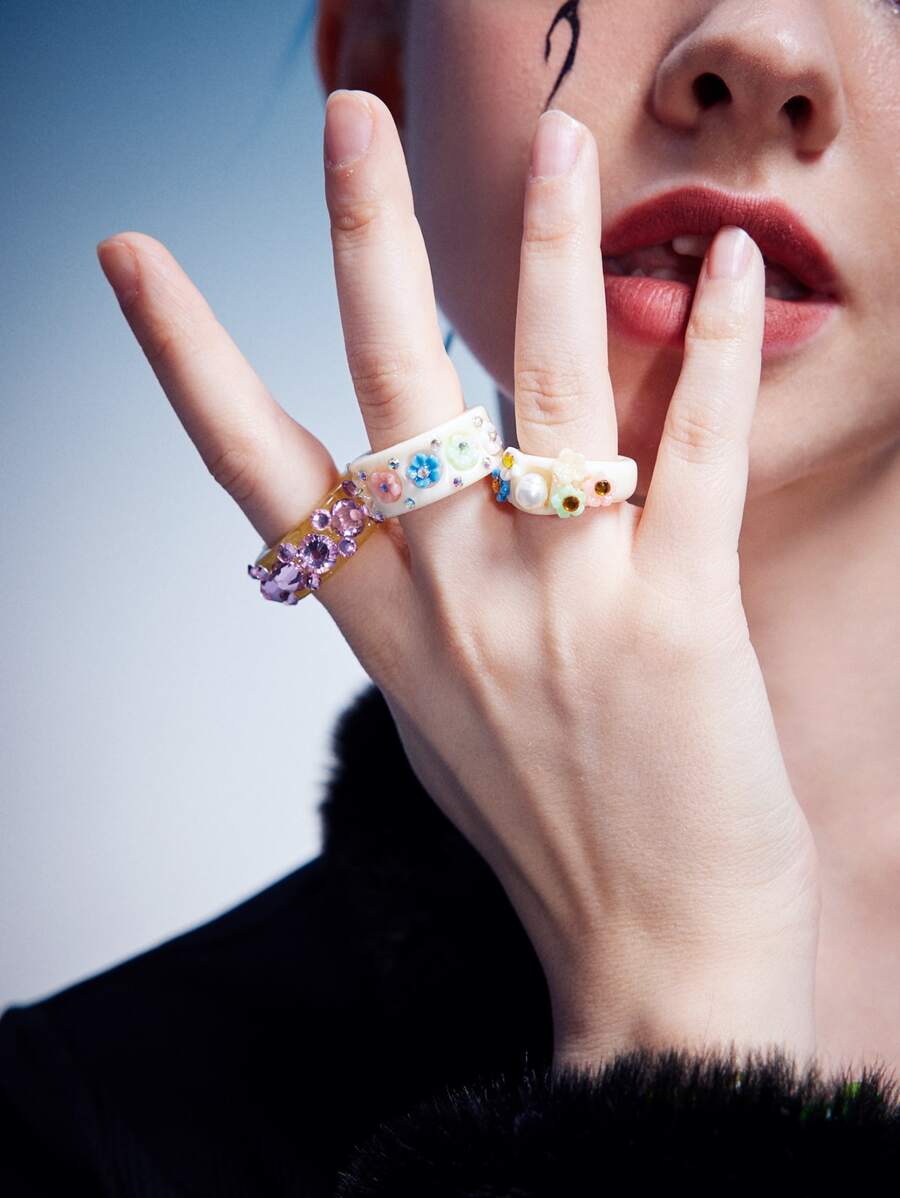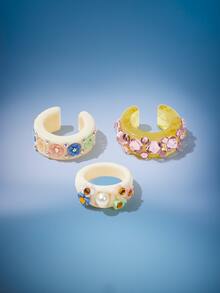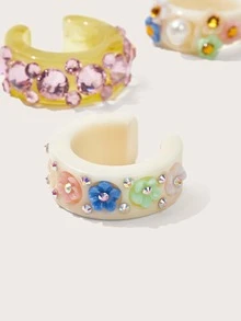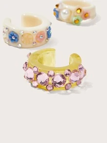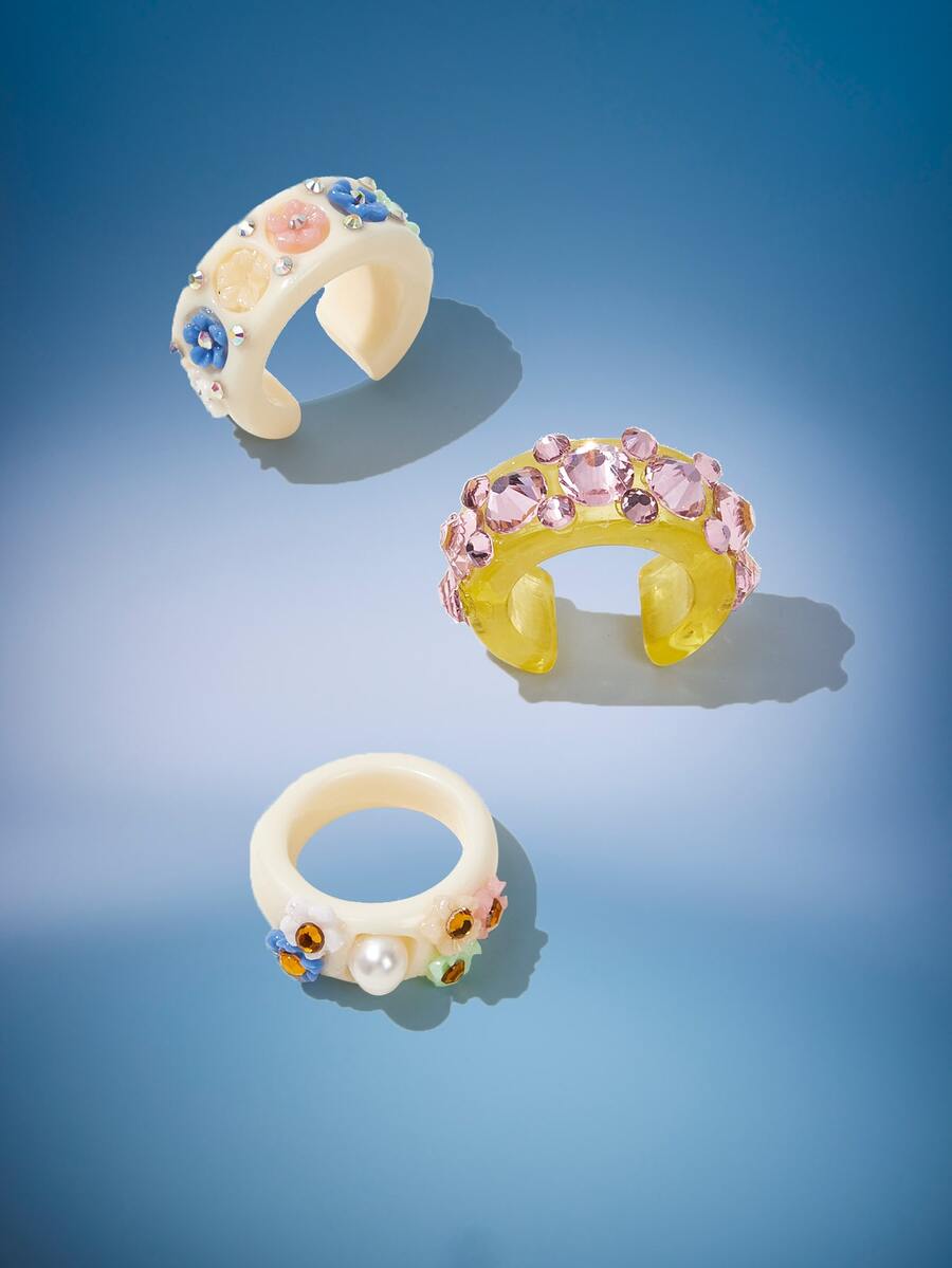 3 piezas Anillo con diseño de diamante de imitación