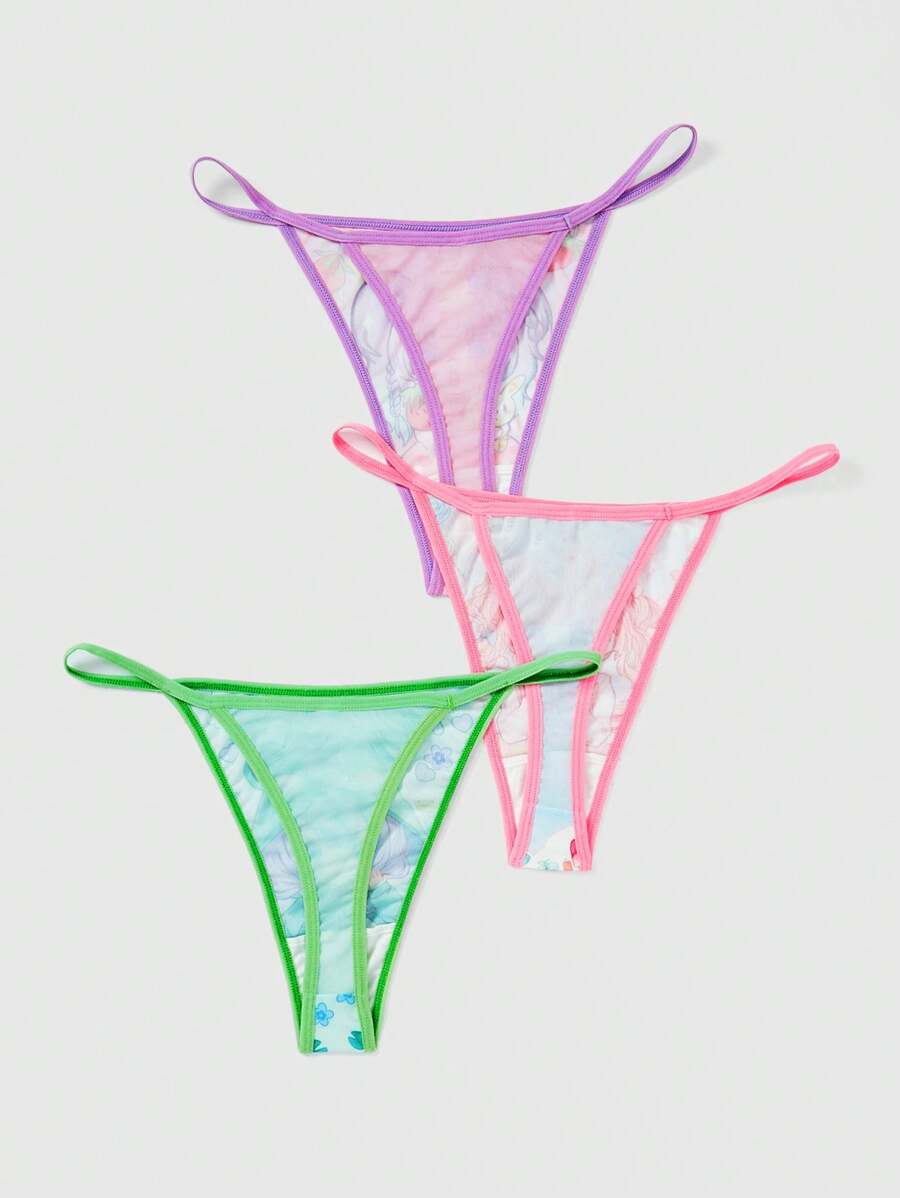 3 Piezas/set Conjunto De Tangas Con Estampado De Malla De Personajes De Dibujos Animados Kawaii