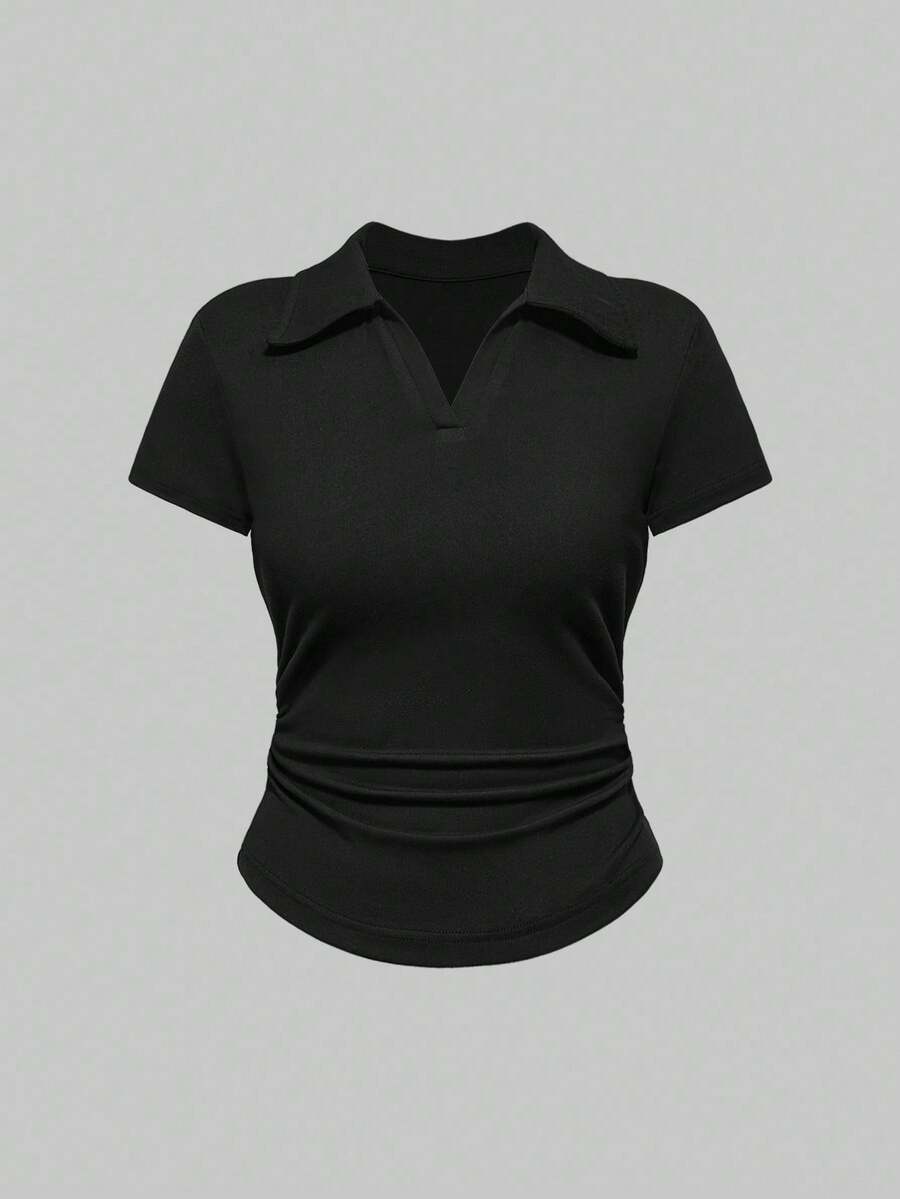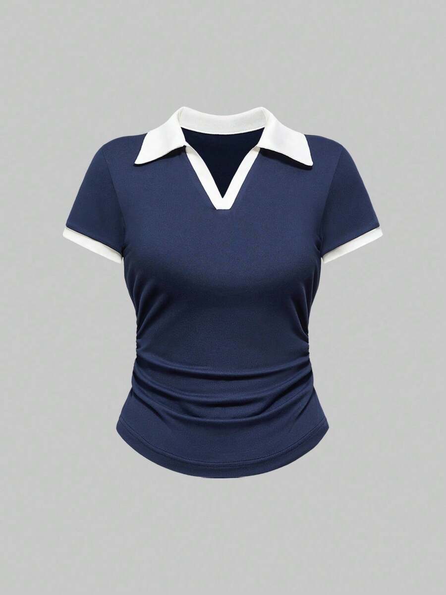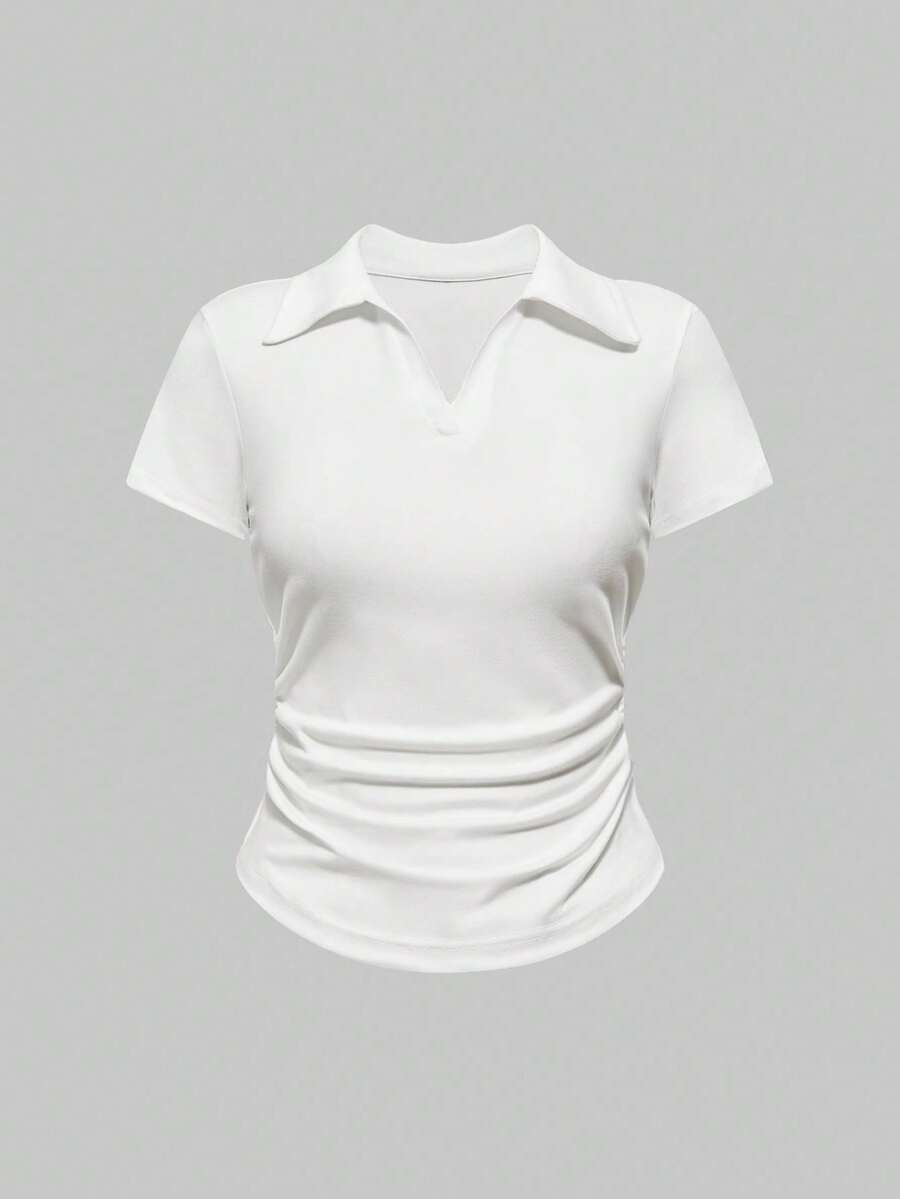 Set de 3 camisas polo de ajuste delgado con cintura fruncida de unicolor en estilo vintage
