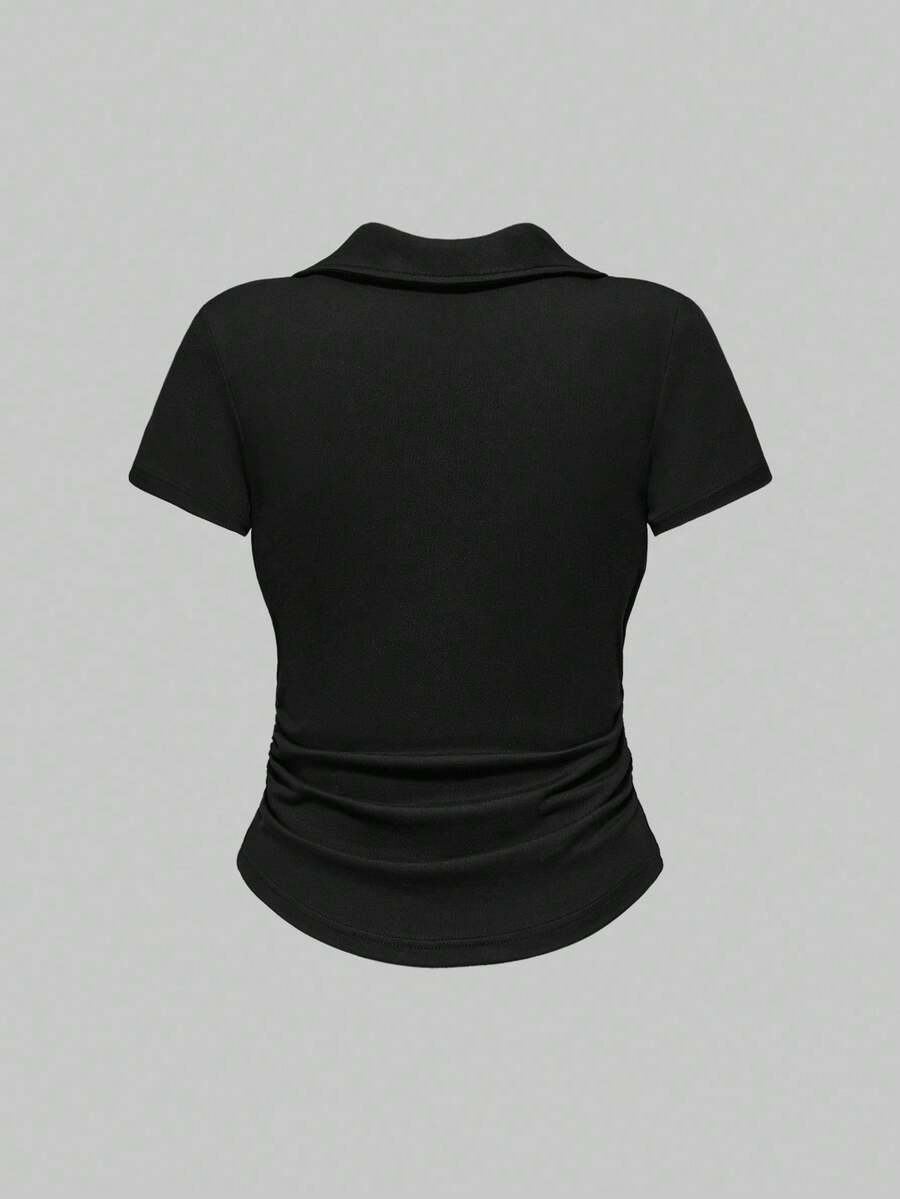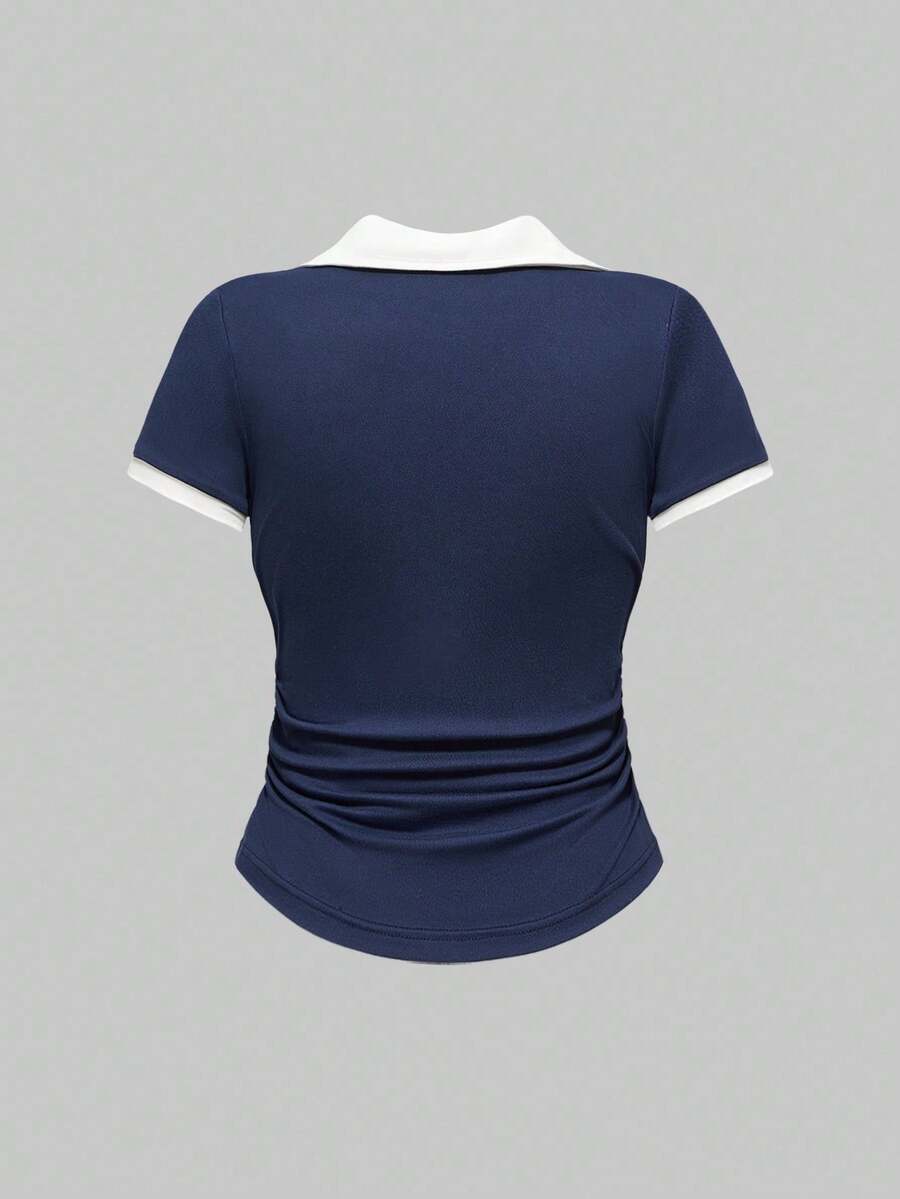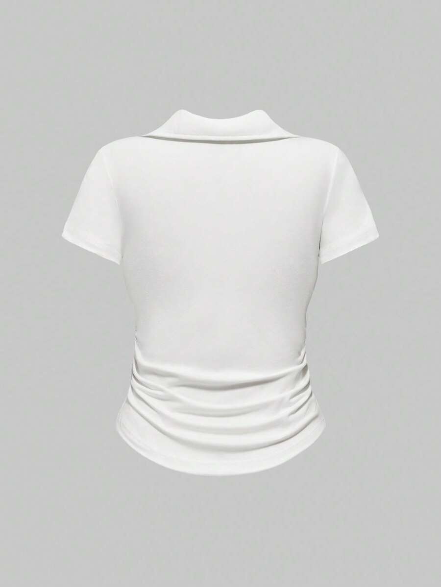 Set de 3 camisas polo de ajuste delgado con cintura fruncida de unicolor en estilo vintage