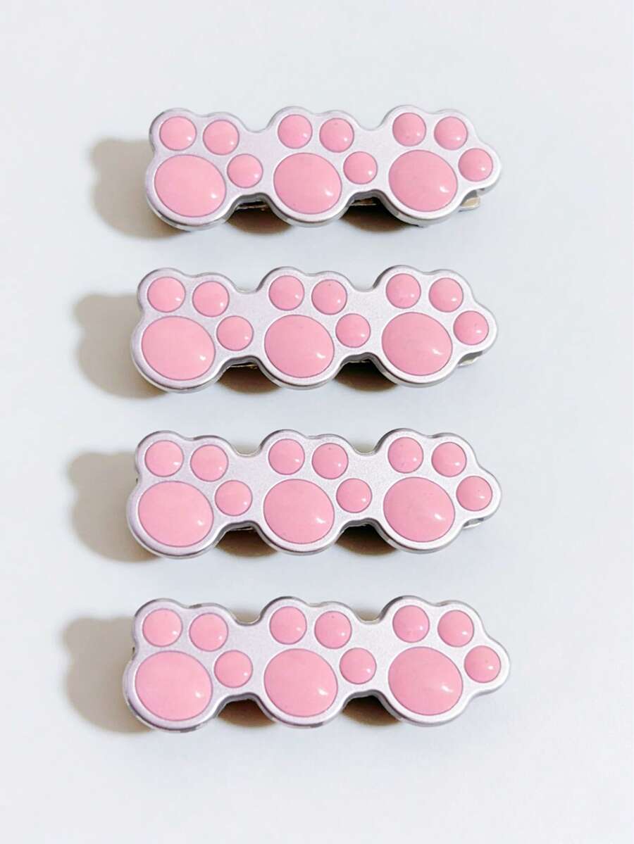 4 Pasadores de pelo con forma de garra de gato de color rosa medio, clips con forma de pico de pato de estilo lindo, accesorios de pelo de metal de estilo dulce.