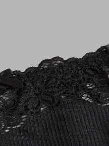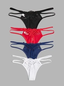 4 piezas Set tanga con encaje en contraste con diseño de lazo