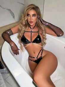 4 piezas Set de lencería con diseño de perla artificial de recubierto