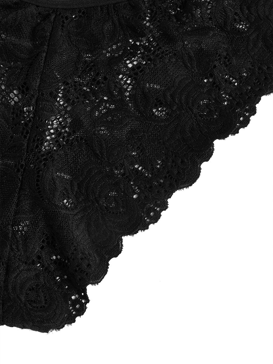 4 piezas Set de lencería con encaje floral con cuerda de cinturón