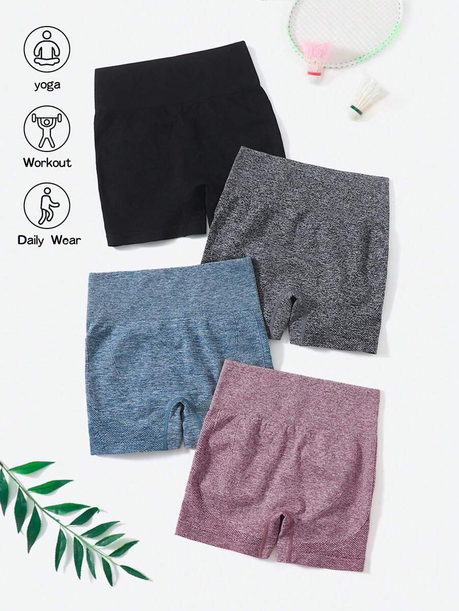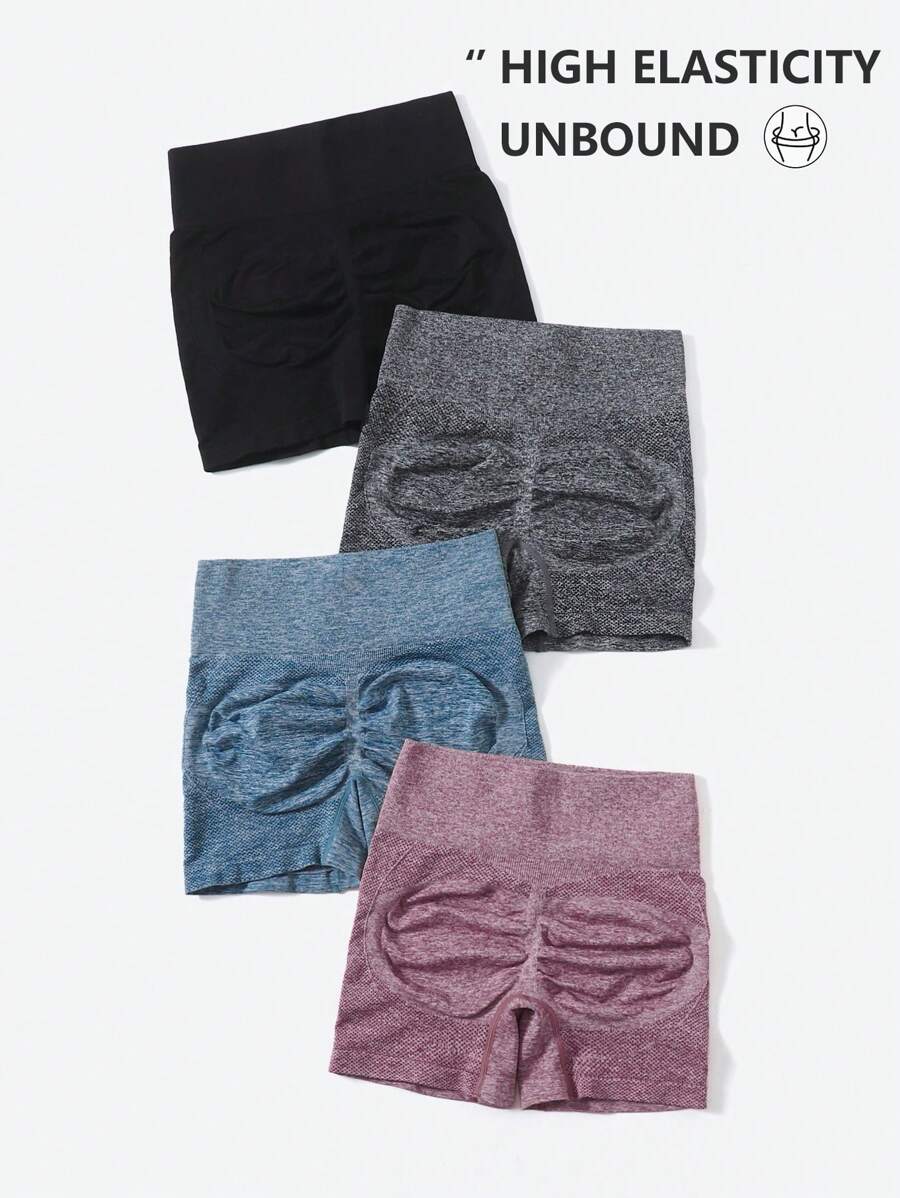 4 piezas Pantalones cortos de deporte transpirables de estilo Boot con detalles fruncidos en las nalgas