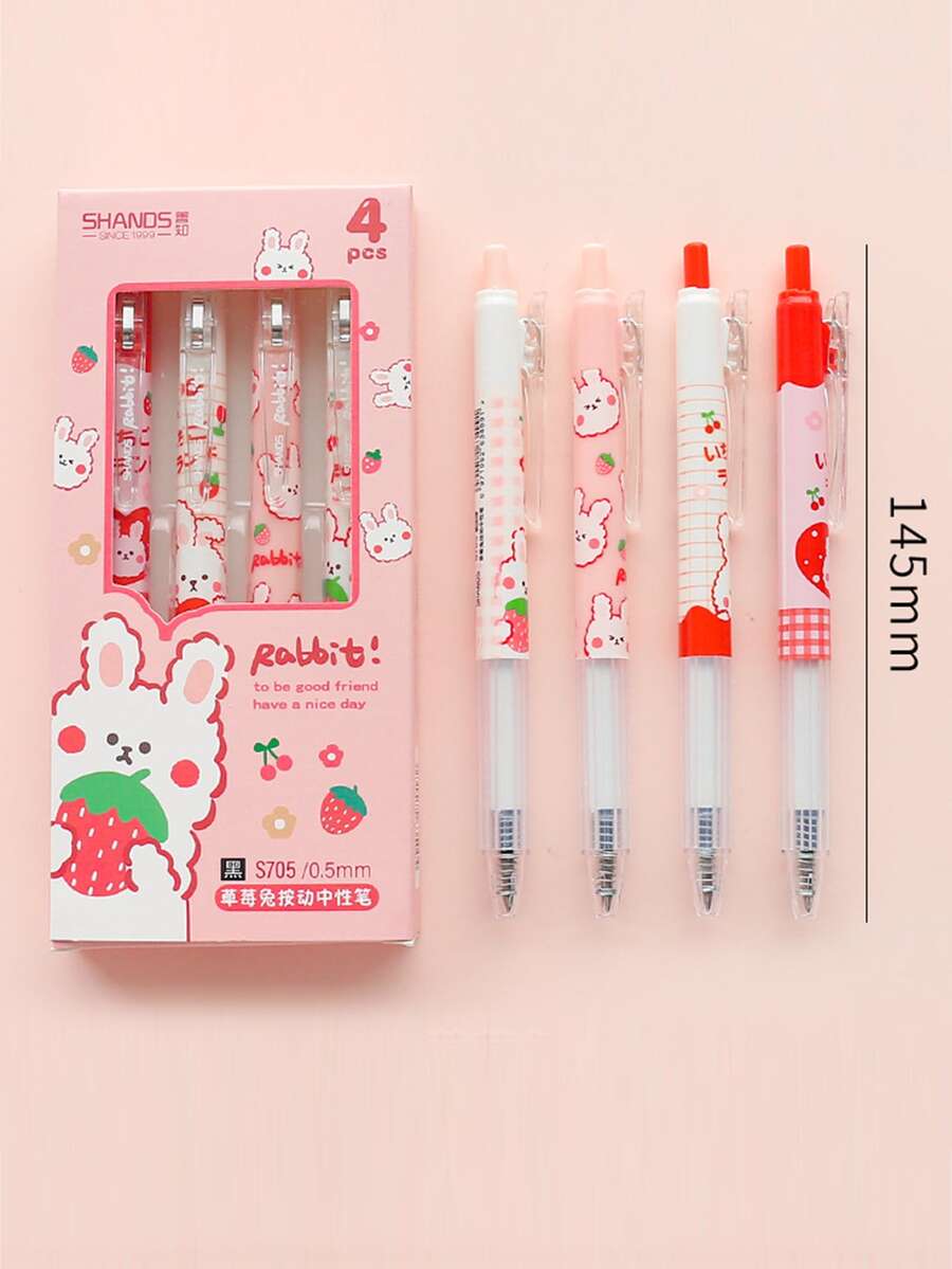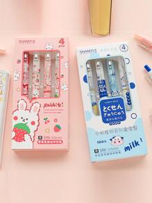 4 piezas Pluma de gel con estampado de animal de dibujos animados al azar