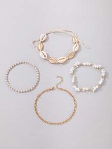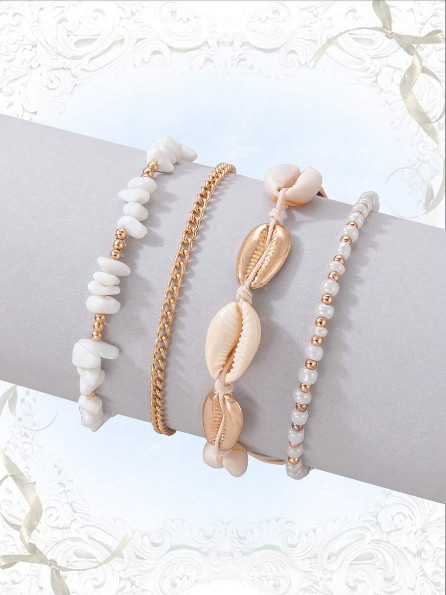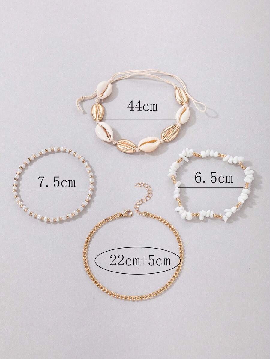 4 piezas Pulsera tobillera moda aleación de zinc con diseño de concha para mujeres para regalo de citas