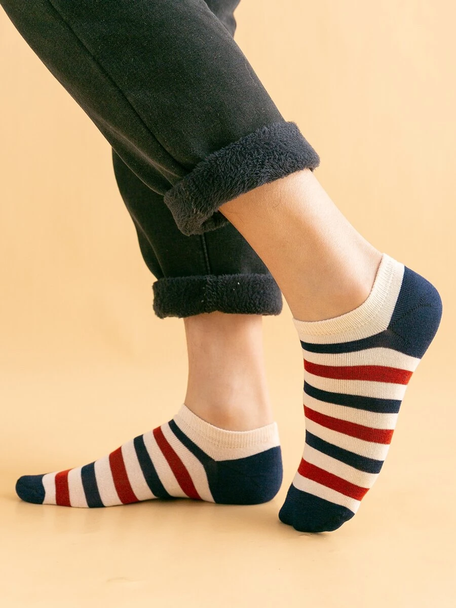 5 pares calcetines tobilleros de rayas de hombres