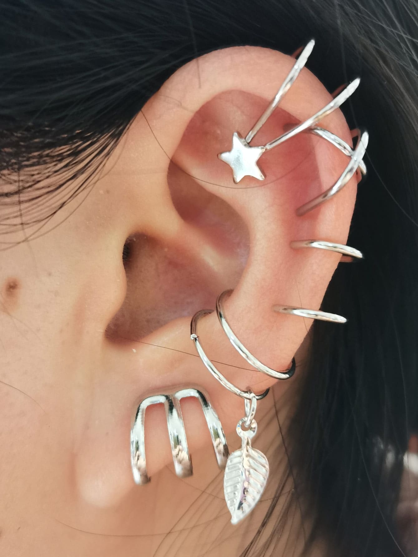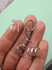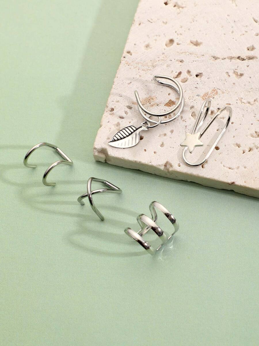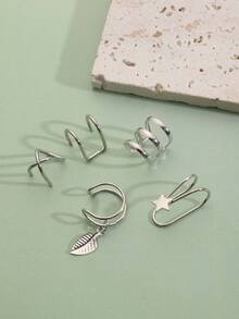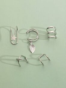 5 piezas Cuff de oreja hoja & con diseño de estrella