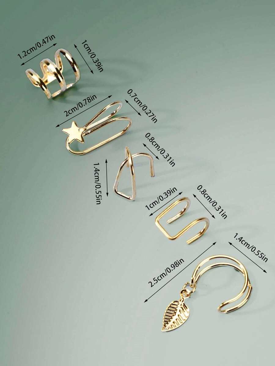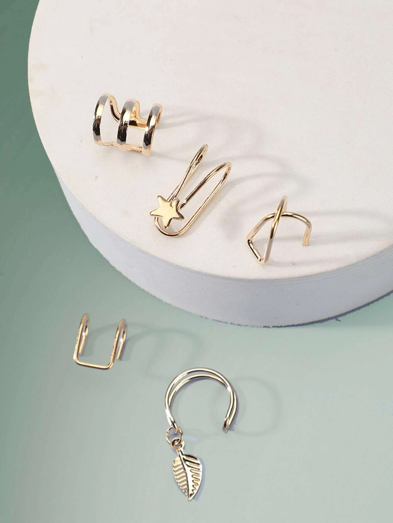 5 piezas Cuff de oreja con estrella & hoja