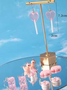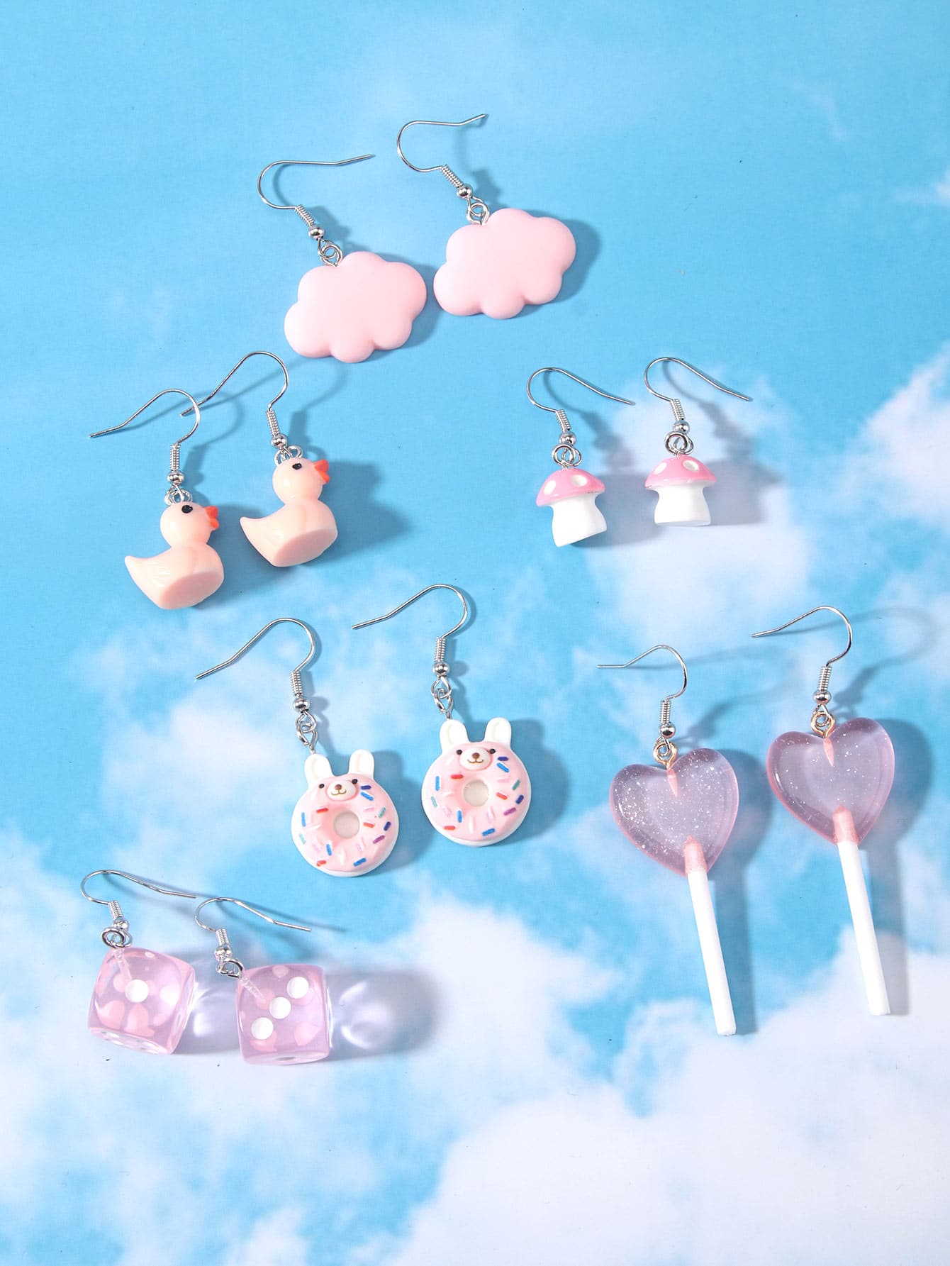 6 pares Pendientes largos de pato de dibujos animados & caramelo chupete