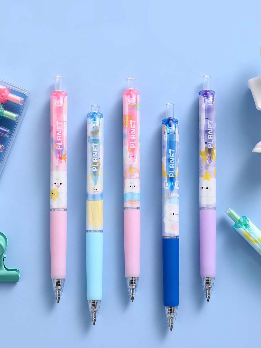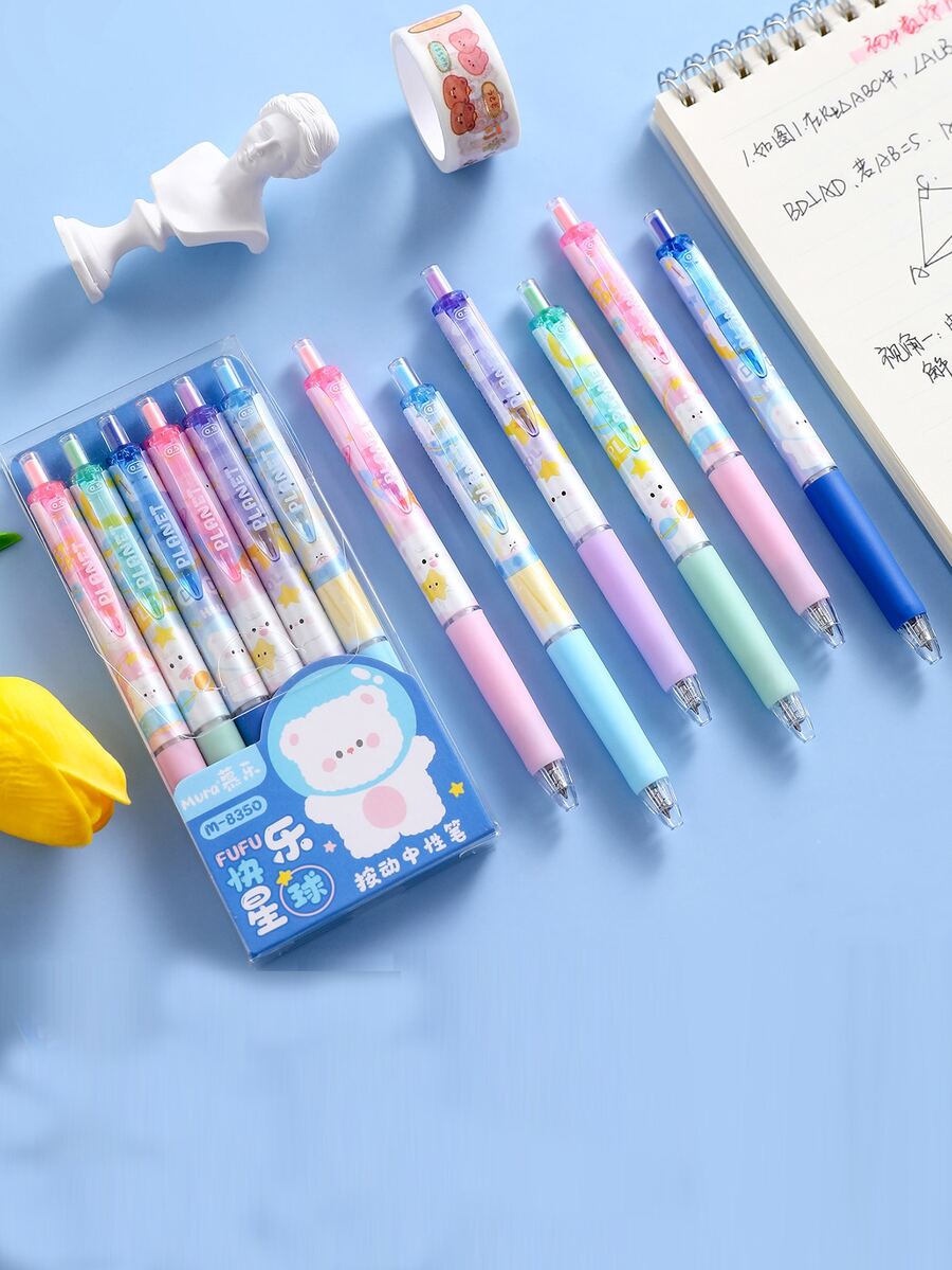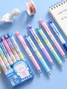 6 piezas Pluma de gel con estampado de animal de dibujos animados