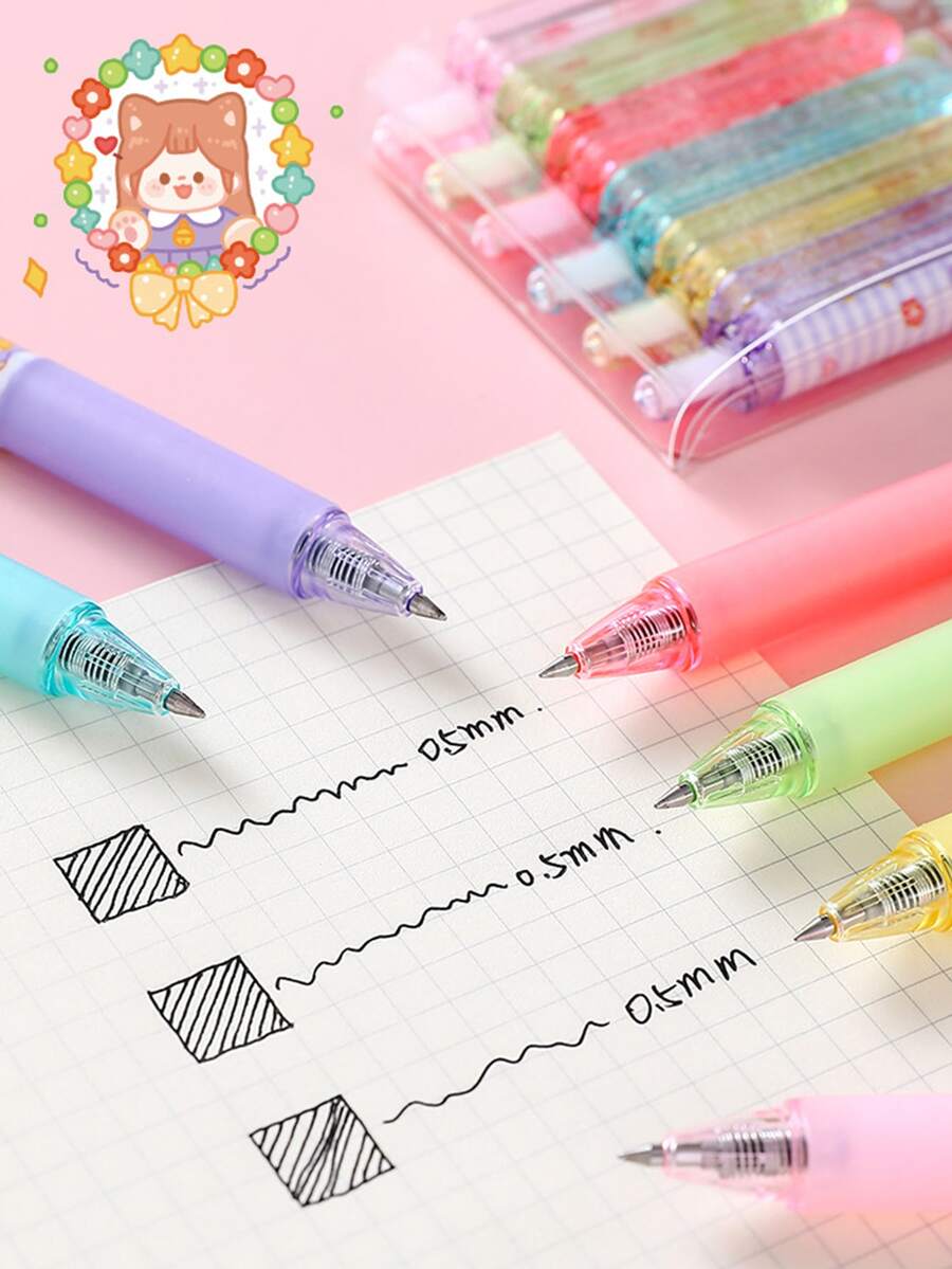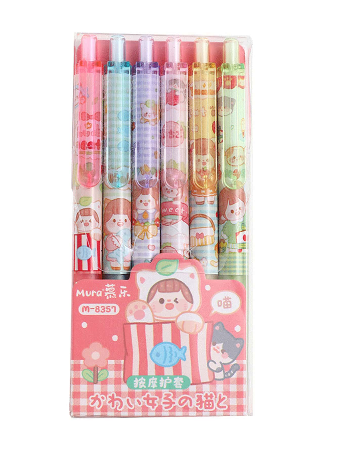 6 piezas Pluma de gel con estampado de figura de dibujos animados