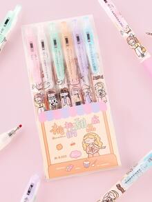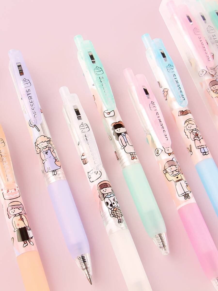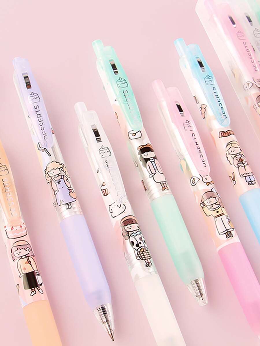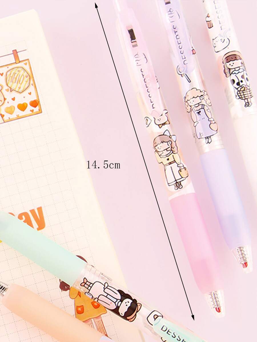 6 piezas Pluma de gel con estampado de figura de dibujos animados