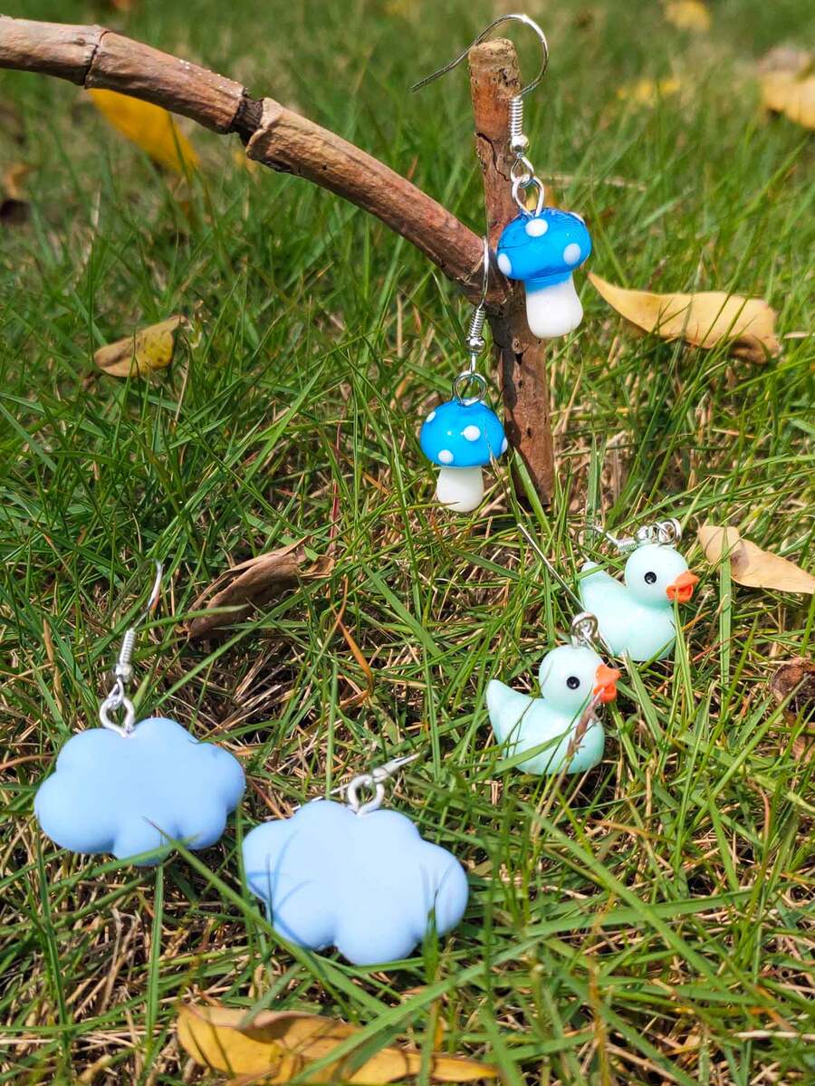 6 piezas Pendientes largos seta