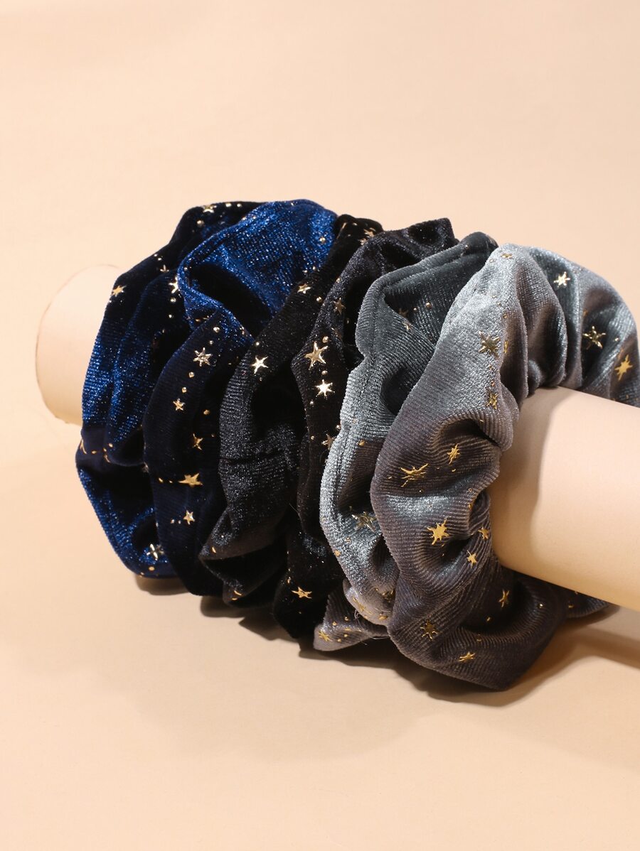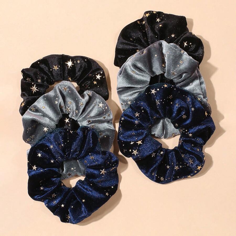 Set de 6 scrunchies de terciopelo con estrellas doradas para el cabello, lazos para el cabello, scrunchies, lazos para coleta