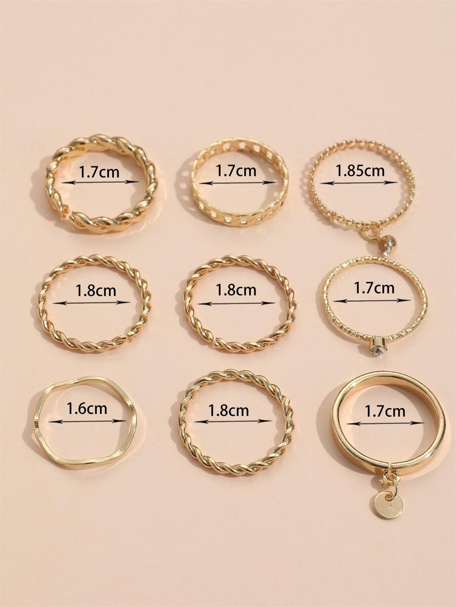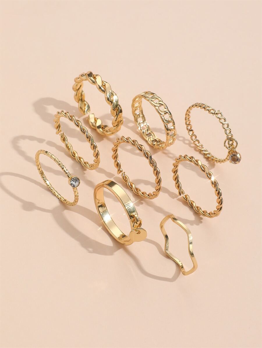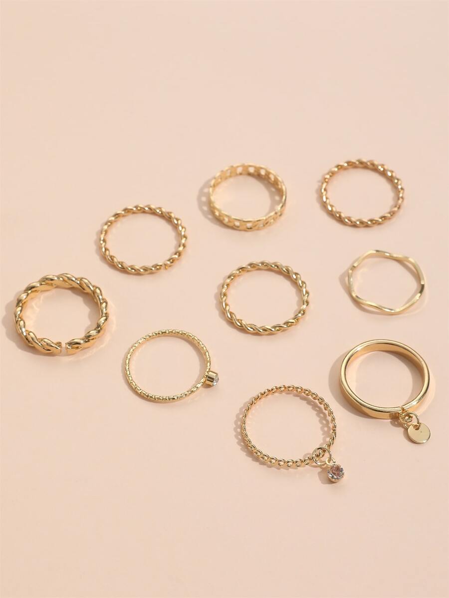 9 piezas/set Anillo con diseño de diamante de imitación