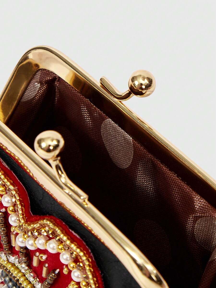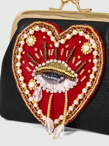 Goth Bolso con patrón de ojo de amor hecho a mano con cuentas, bolso pequeño personalizado de cambio con estilo gótico