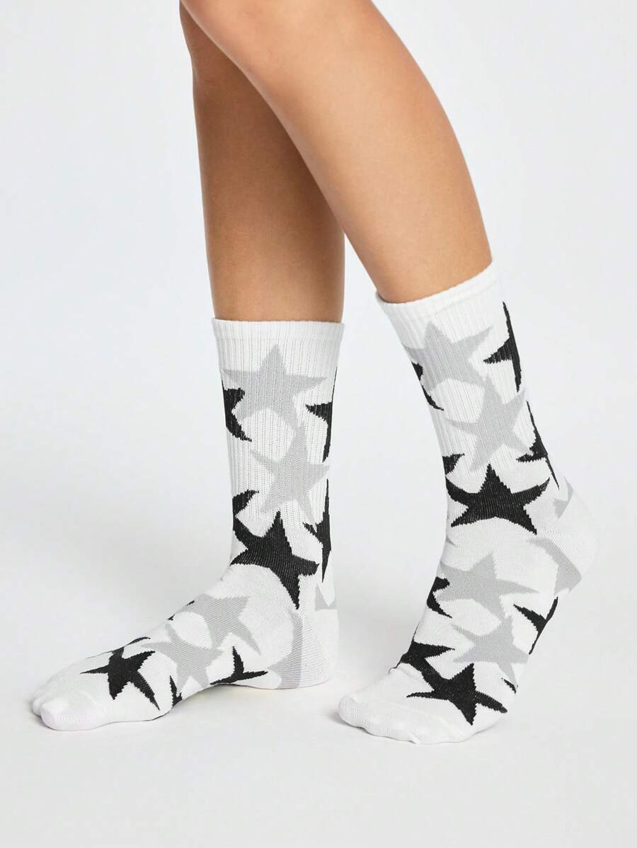 Academia 1 par de calcetines media-caña de color bicolor con pentagrama gótico para parejas