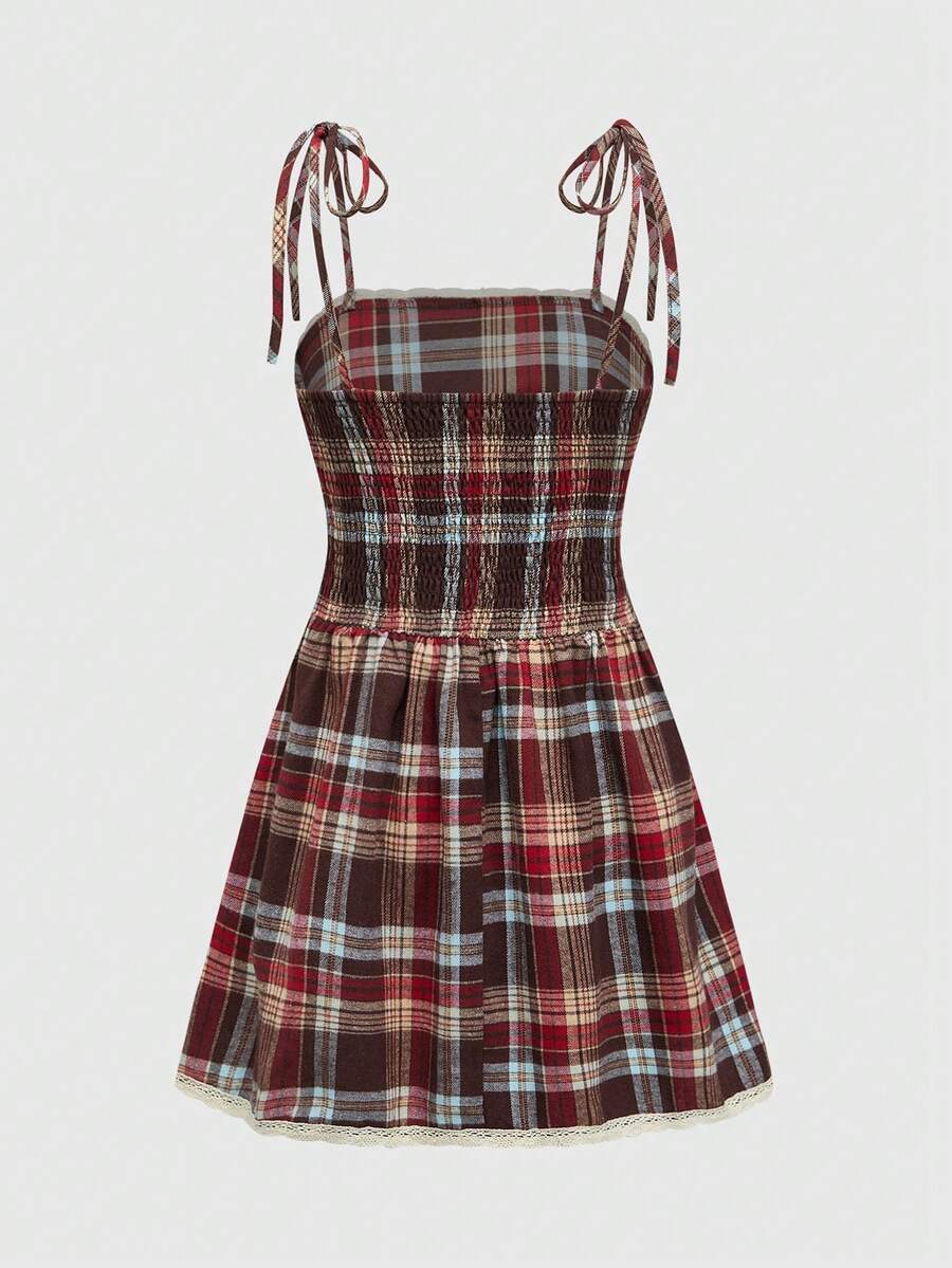 Academia Vestido mini casual y vintage con tirantes a cuadros, adorno de encaje