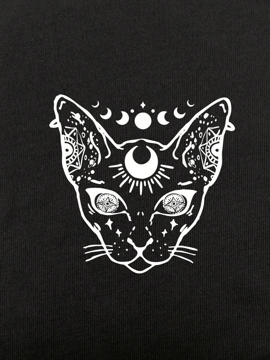 Academia Camiseta crop gato & con estampado de luna