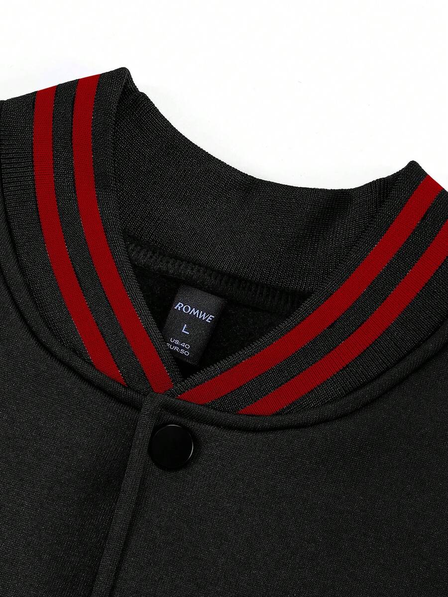 Academia Hombres Cazadora de universidad con estampado de letra ribete de rayas