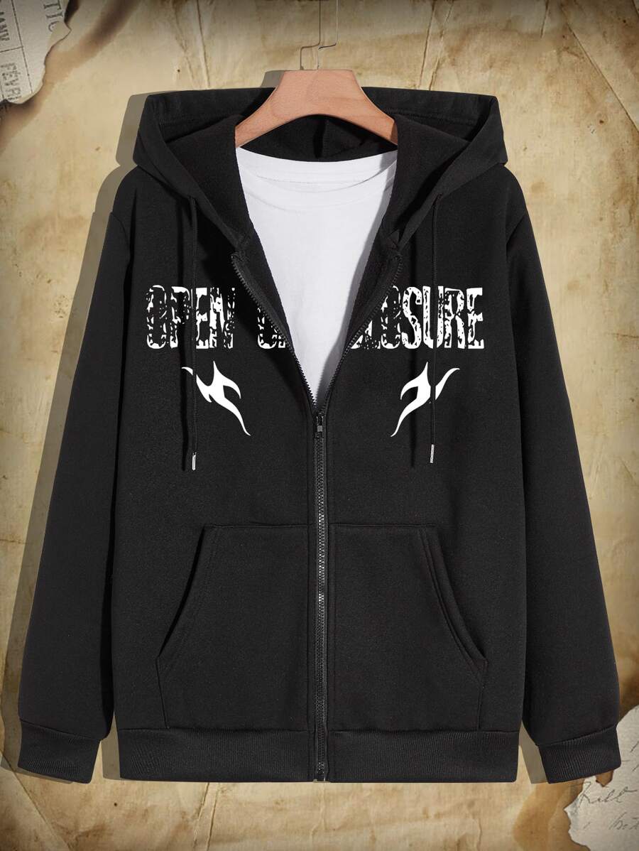 Academia Hombres Capucha con cremallera con estampado de letra sin camiseta