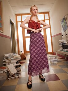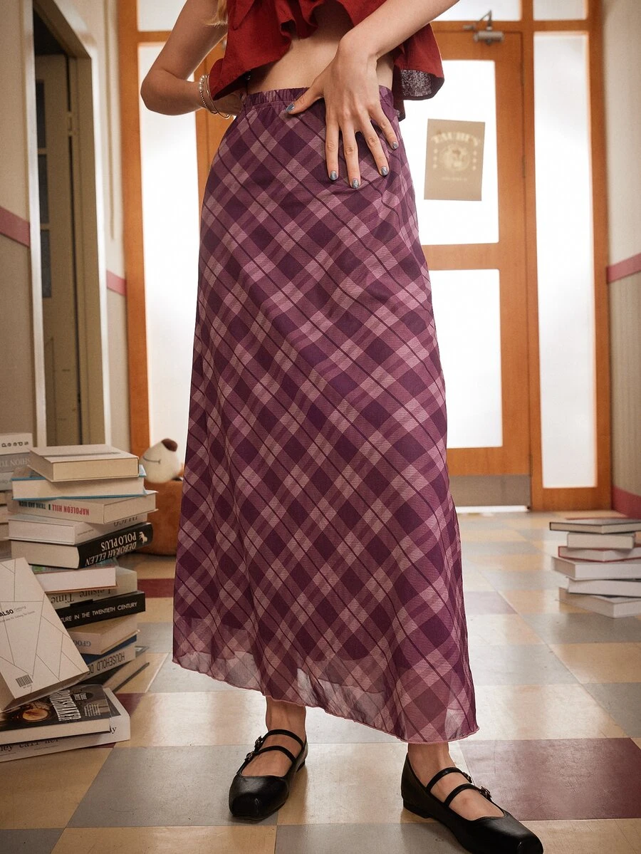 Academia Falda de cuadros de cintura elástica