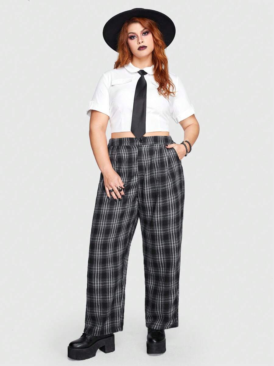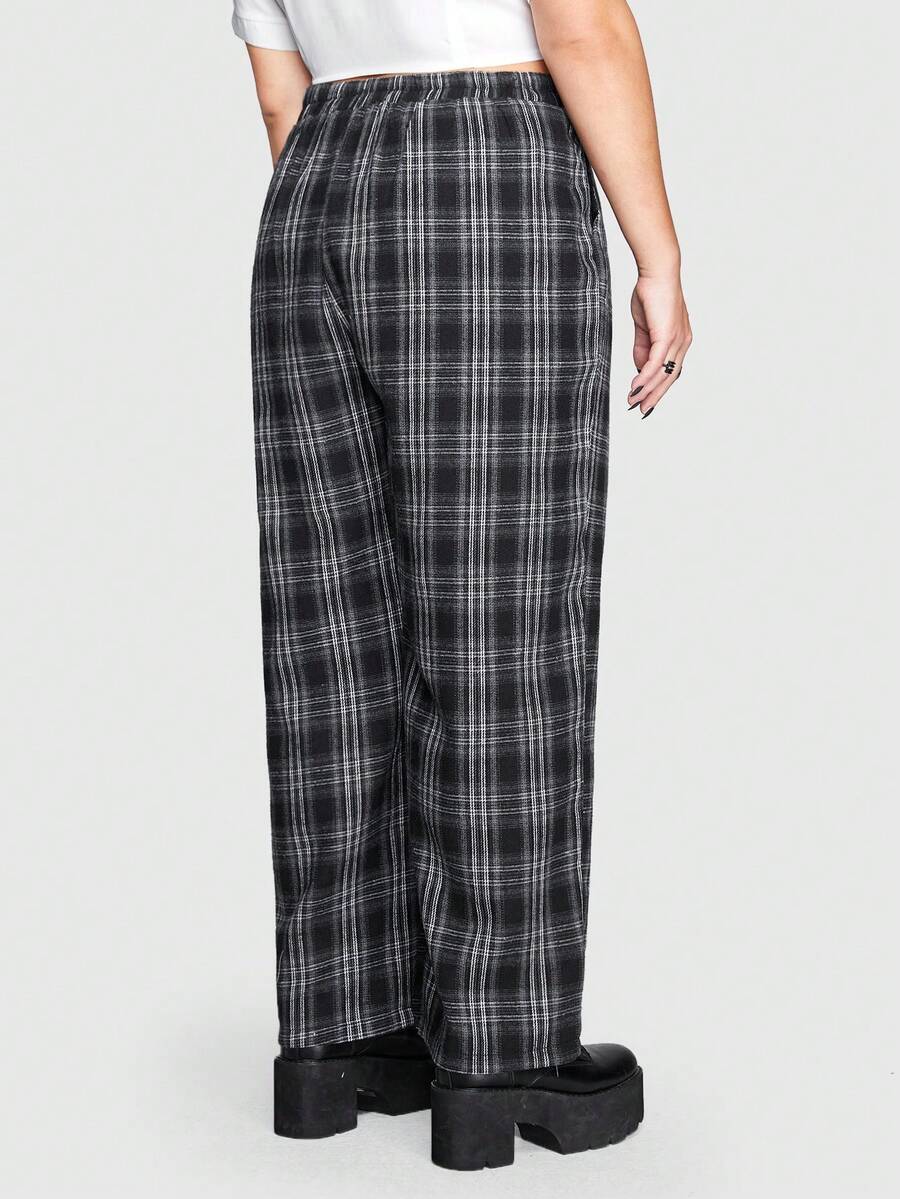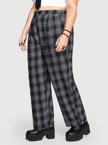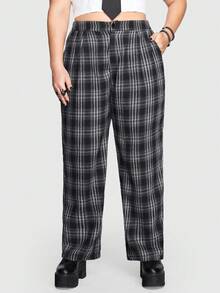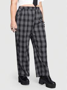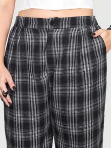 Academia Talla grande Pantalones con estampado de cuadros con bolsillo oblicuo