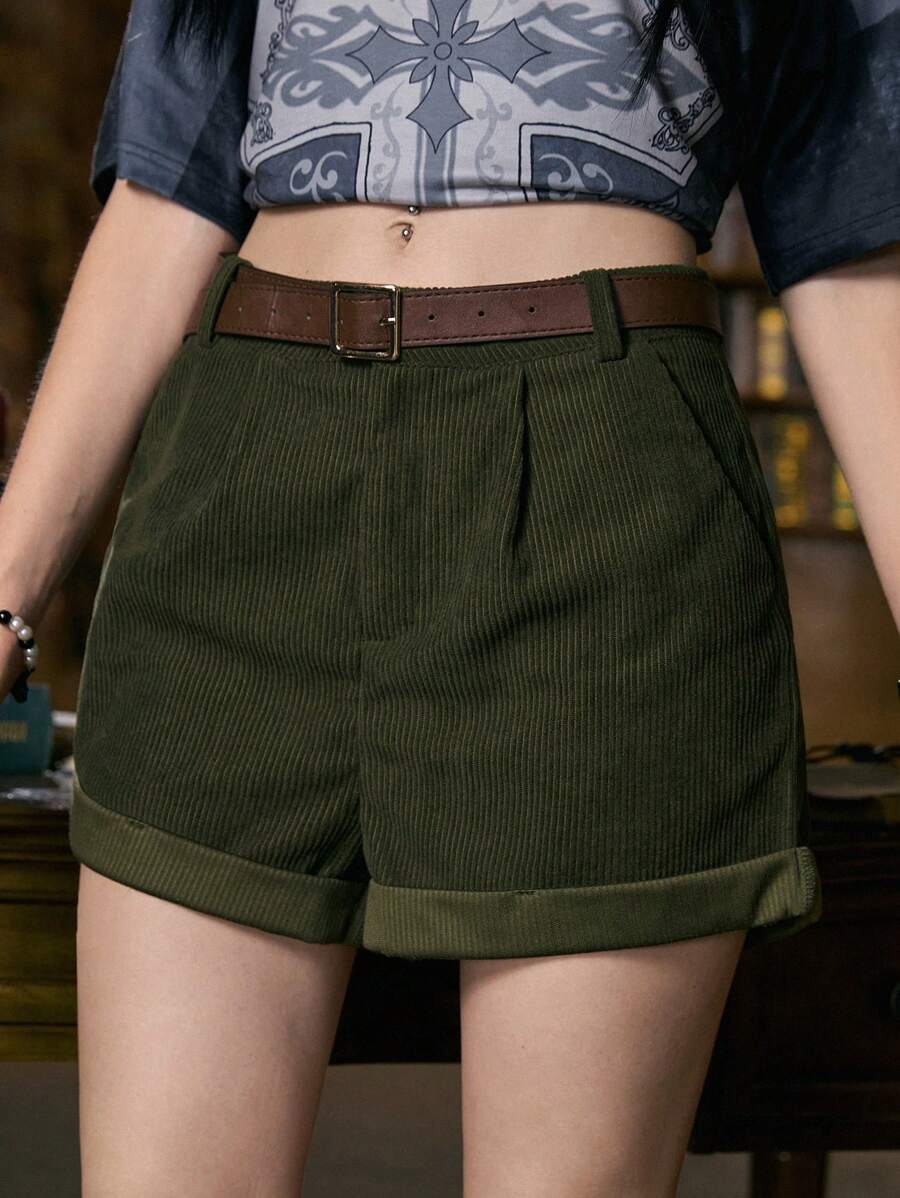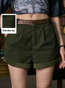 Academia Pantalones cortos de pana sólida con cinturón, para la escuela