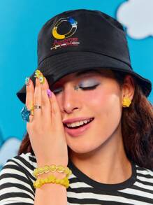 Adventure Time X ROMWE Sombrero de cubo casual y de moda con gráficos de dibujos animados y letras