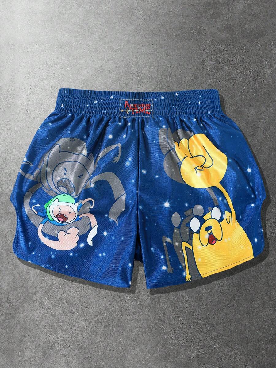 Adventure Time X ROMWE Pantalones cortos de boxeo casuales de hombre con estampado de dibujos animados lindos y cintura elástica, para verano