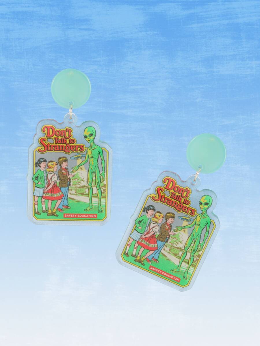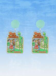 Stevenrhodes Pendientes largos geométricos con extraterrestre & con estampado de figura