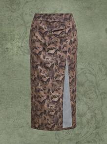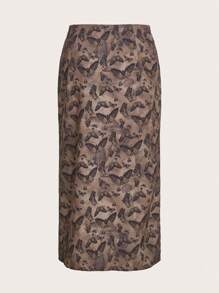 Hippie Falda con estampado de mariposa de muslo con abertura