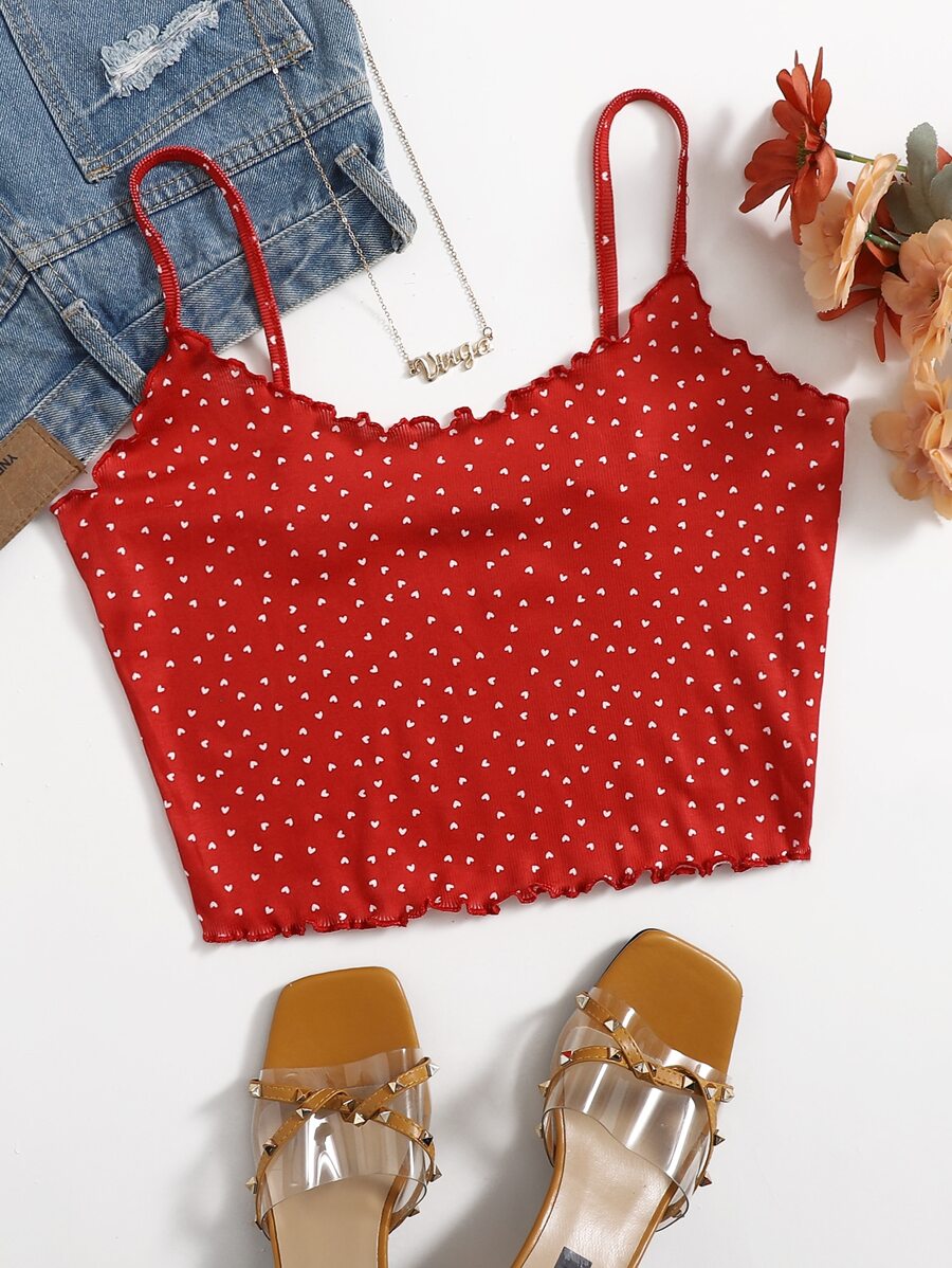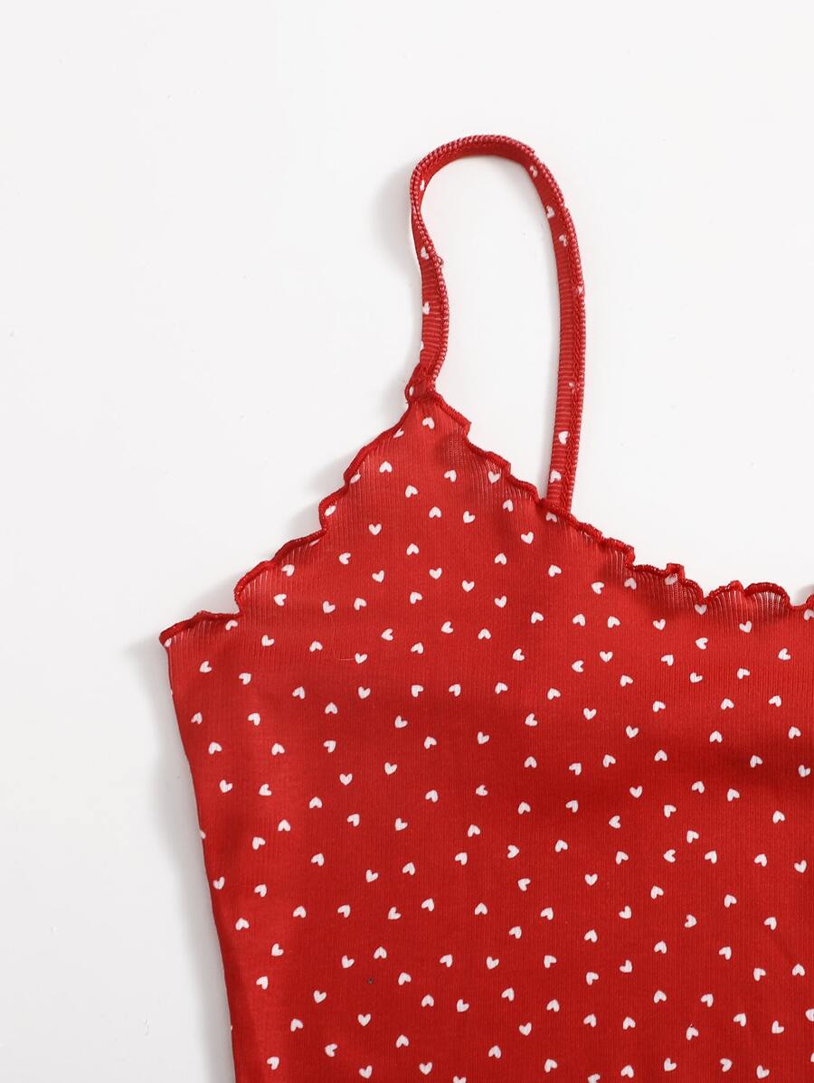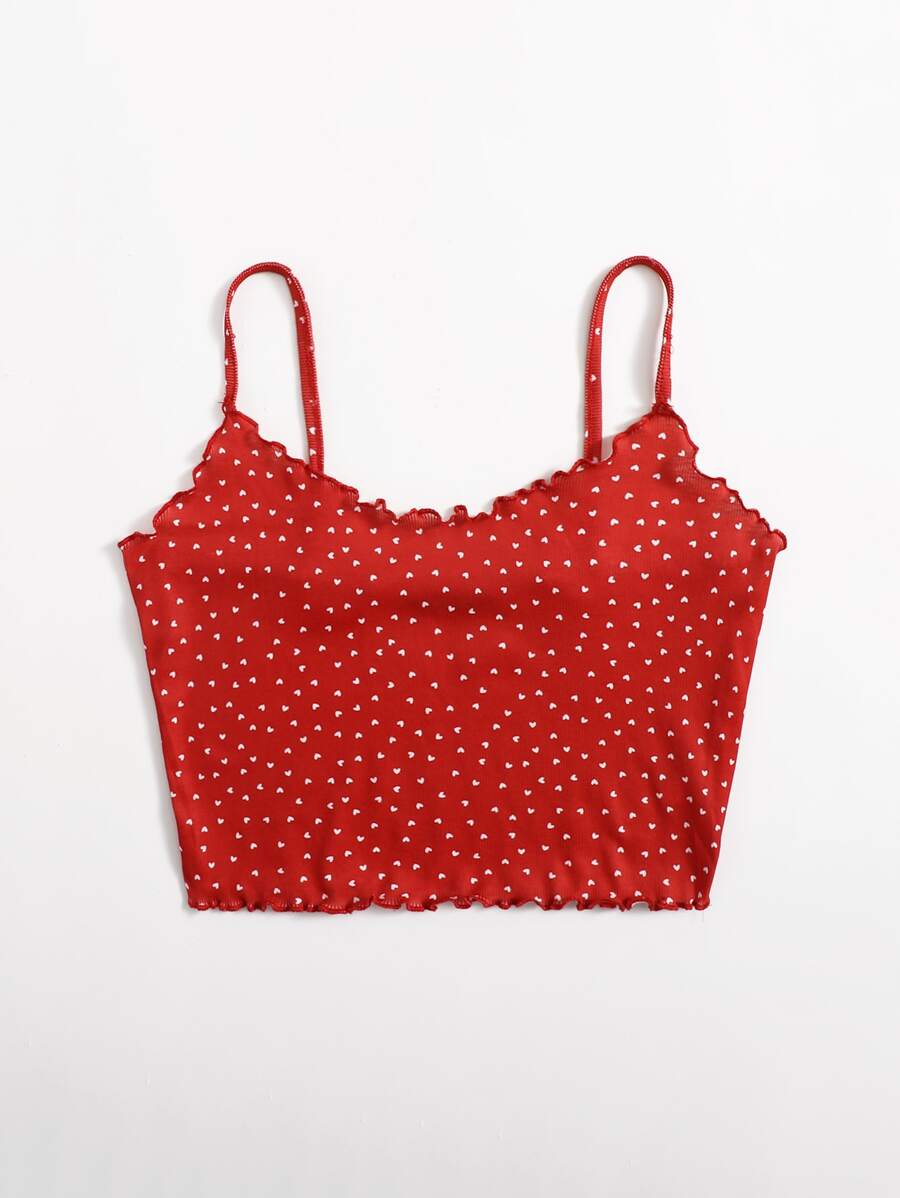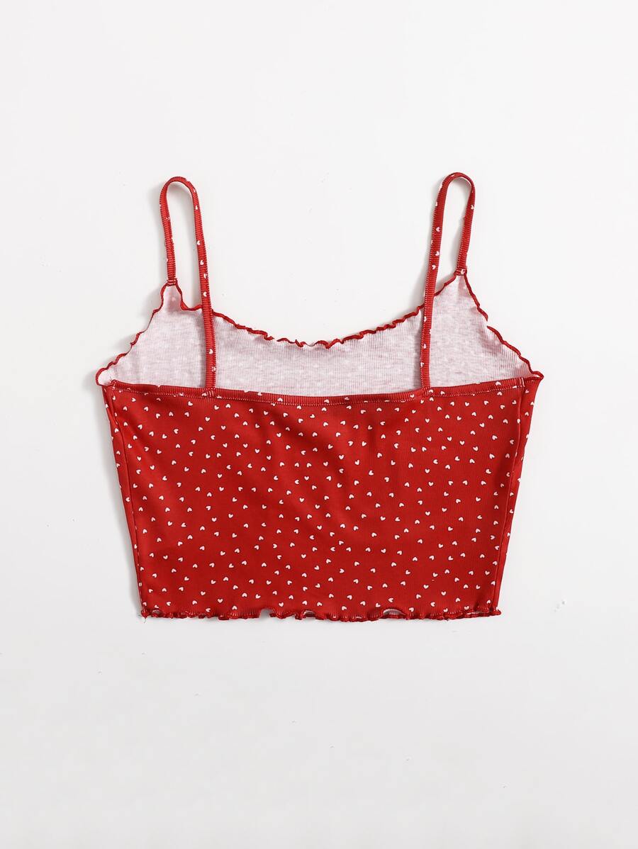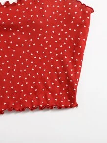 Top de tirantes tejido de canalé ribete en forma de lechuga con estampado de corazón