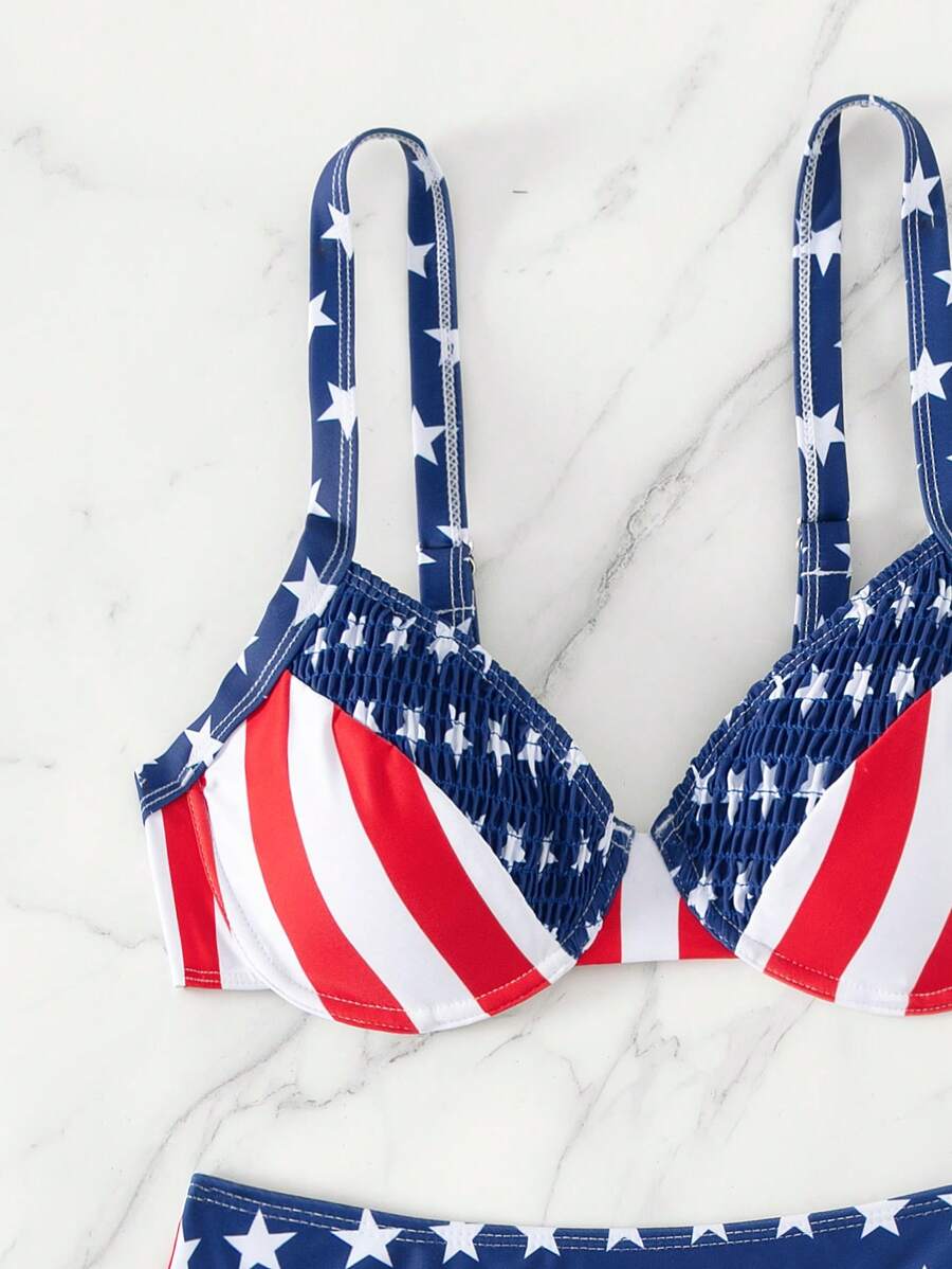 Bikini de Americana con estampado de bandera de EE. UU. con sujetador con aros y braga para el 4 de julio, conjunto de bikini de verano para la playa