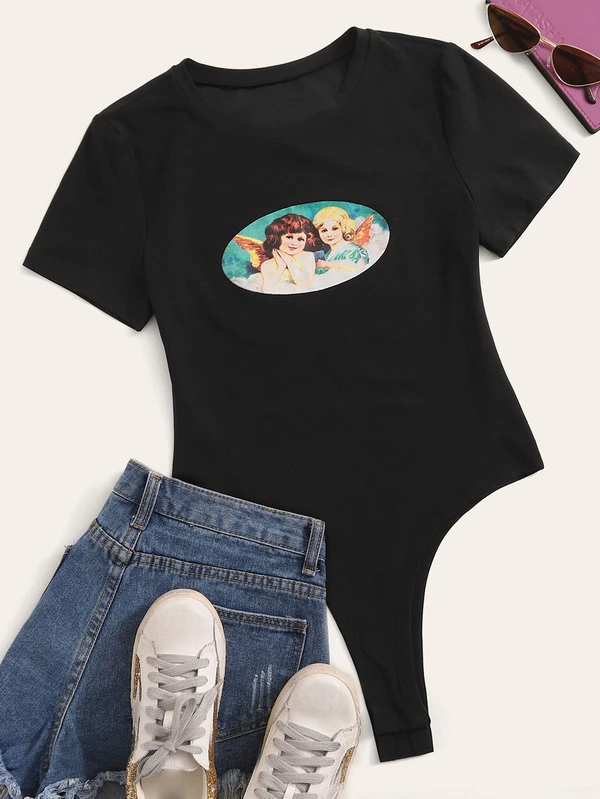 Body de manga corta con patrón de ángel