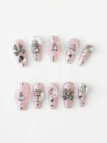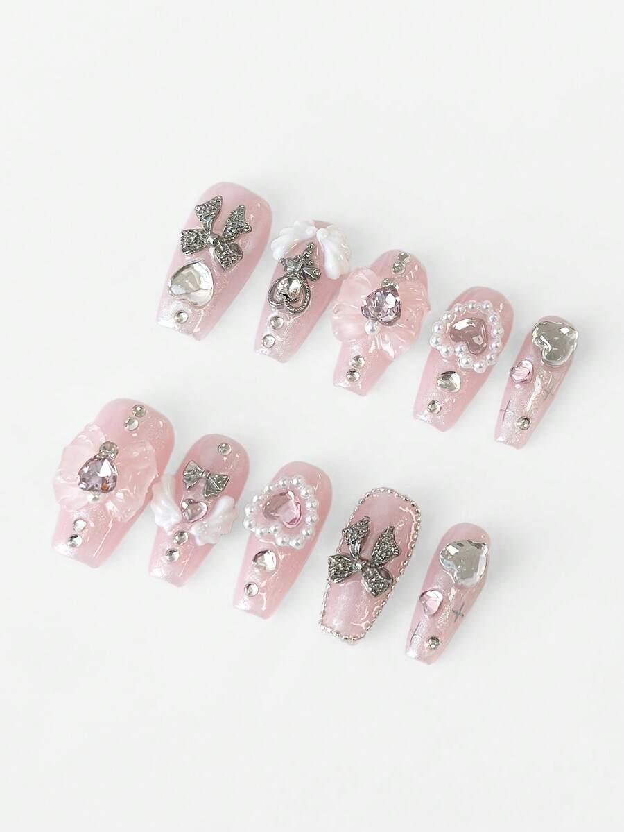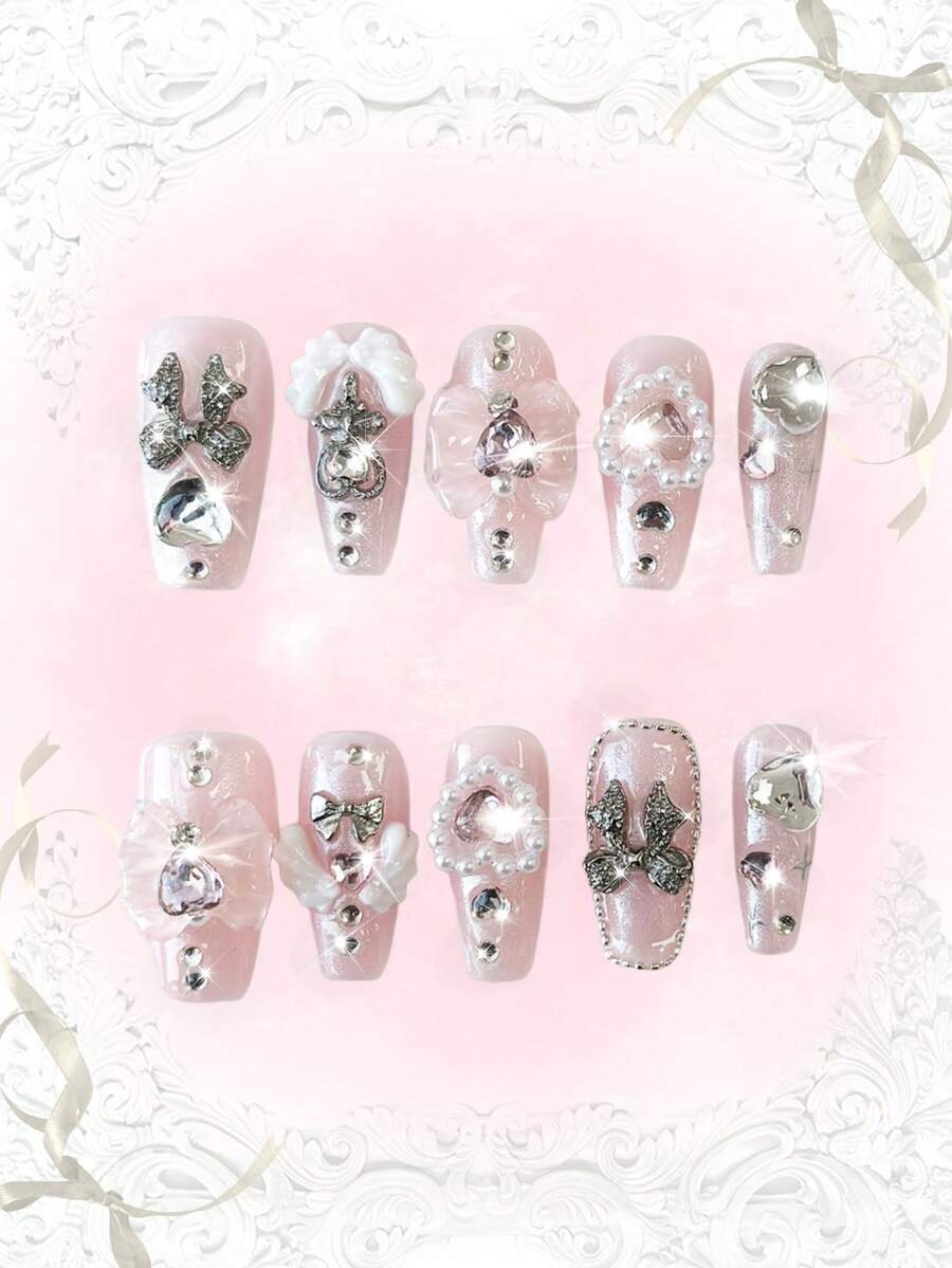 Anime 10 piezas de elementos decorativos de alas de lazo lindos y pintados a mano de alta calidad + 3 piezas de cinta adhesiva doble cara, pegatinas con diamantes y lentejuelas con forma de ataúd al estilo Y2K, adecuadas para fiestas, bailes de graduación y uso diario.