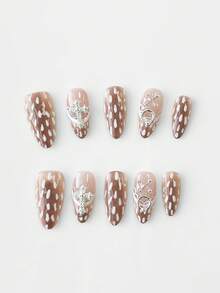 Anime 10 piezas de uñas postizas de alta calidad con diseños adorables de moños, notas musicales y estrellas, talla grande 3 piezas de adhesivo doble cara. Pegatinas de arte de uñas desmontables con cadena de cristal, estilo francés Y2K con lunares, adecuadas para vacaciones, fiestas, baile y uso diario.