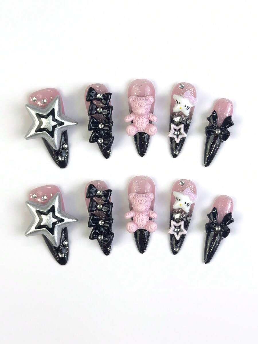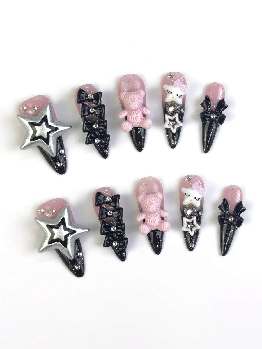 Anime 10 piezas de pegatinas de arte de uñas con corazones, estrellas, lazos y alas con cinta en estilo Y2K