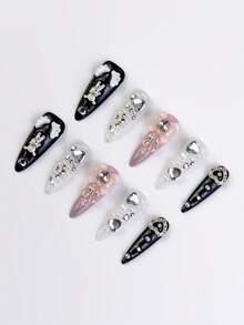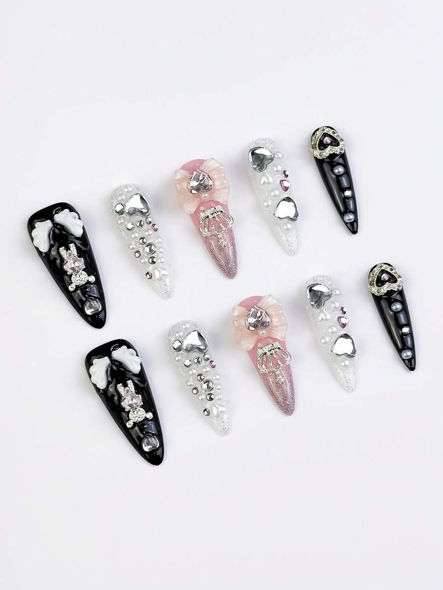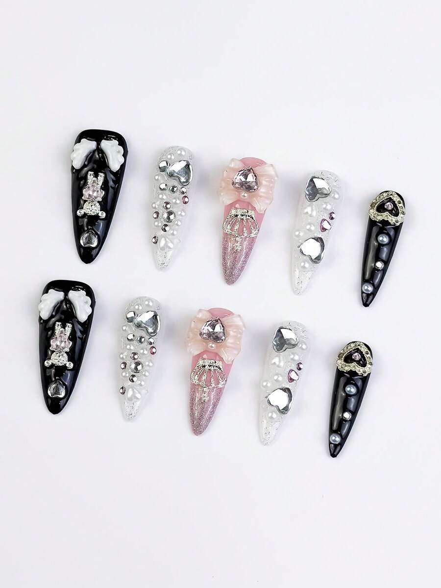 Anime 10 piezas de pegatinas de arte de uñas con corazones, estrellas, lazos y alas en estilo Y2K con cinta