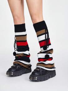Anime 1 par de calentadores de pierna de 60cm de largo, con diseño de parches multicolor y pompones, adecuados para todas las estaciones, para mujeres