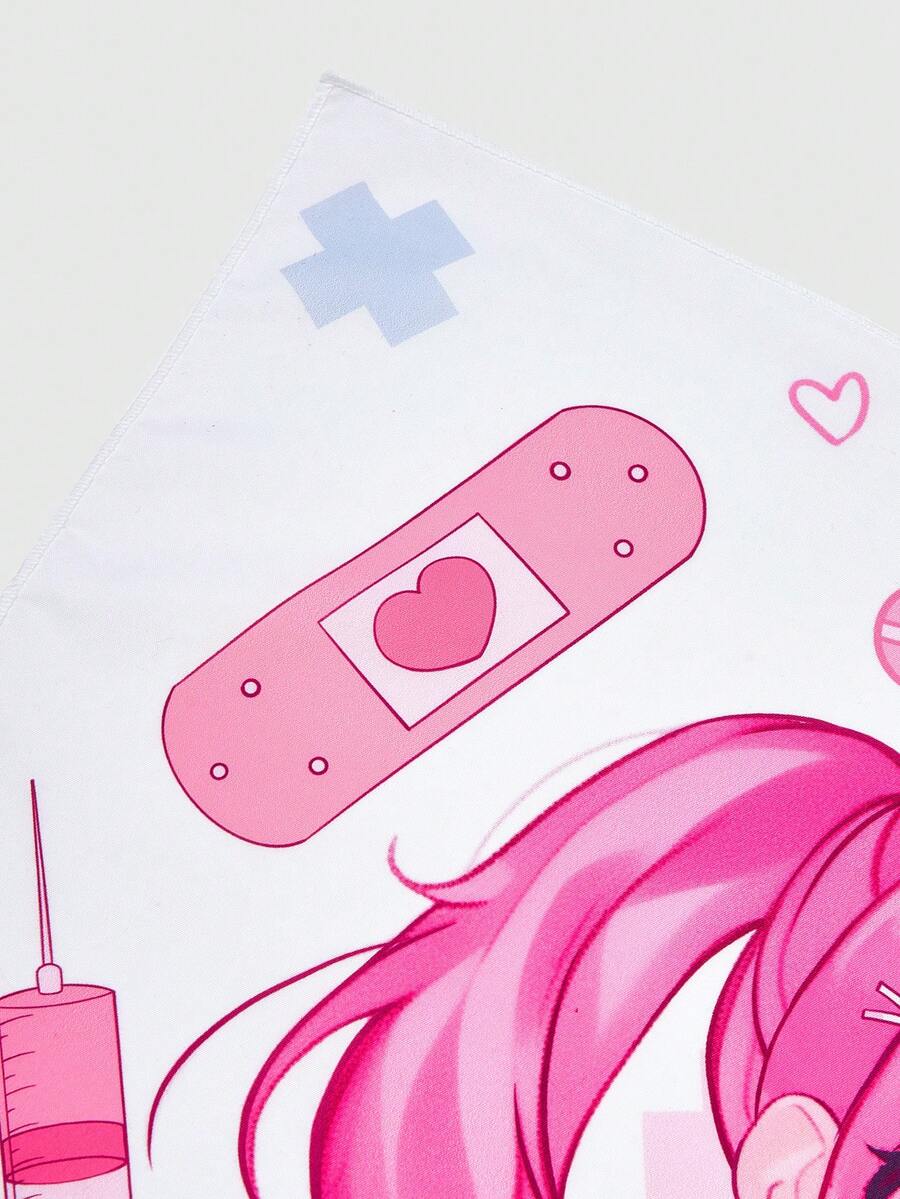 Anime 1 pieza Pañuelo cuadrado pequeño con estampado de enfermera niña de dibujos animados, accesorio de moda versátil con elementos de vendaje y jeringa