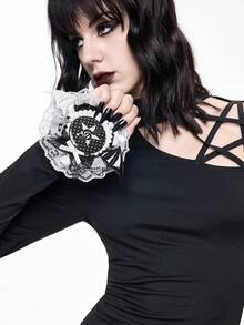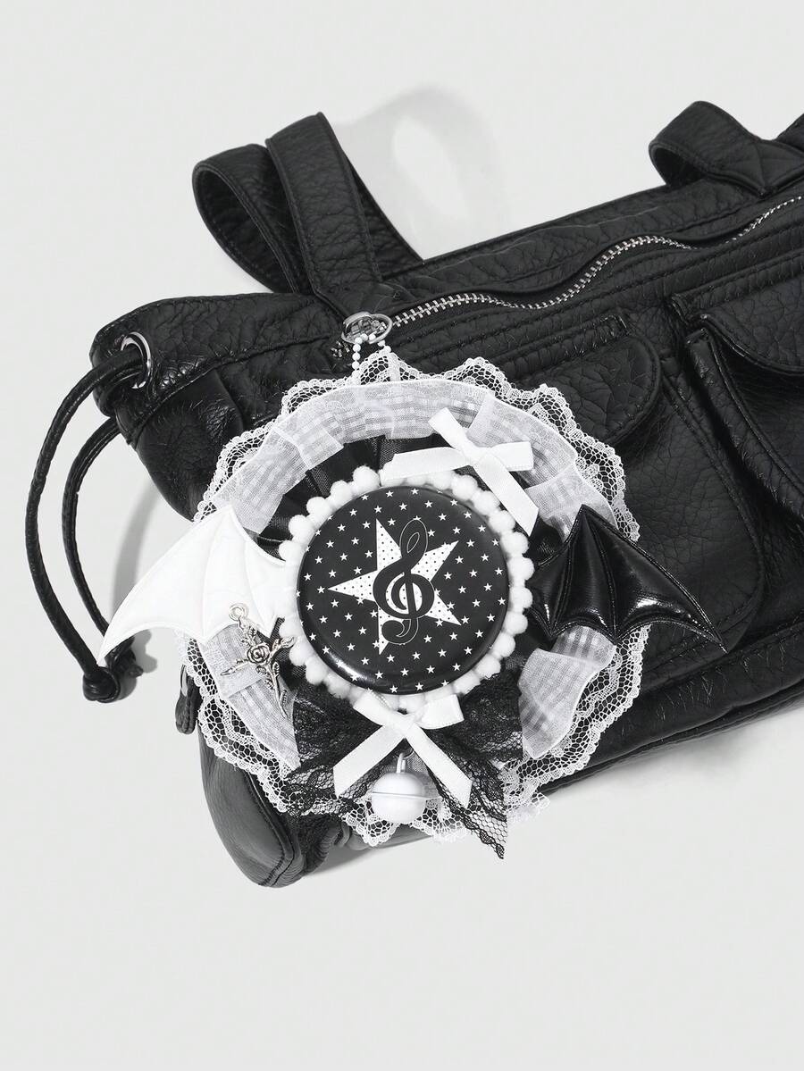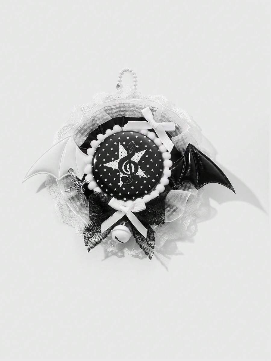Anime 1 pieza Broche de estilo gótico Y2K de moda vintage, elegante y lindo, de alta calidad, con diseño de cruz punk, estrella a lunares/nota musical, huella de pata, lazo, con detalles en negro y blanco de encaje, cuadros, malla brillante, alas de ángel y demonio, rosa, espina, cruz y lazo con campana