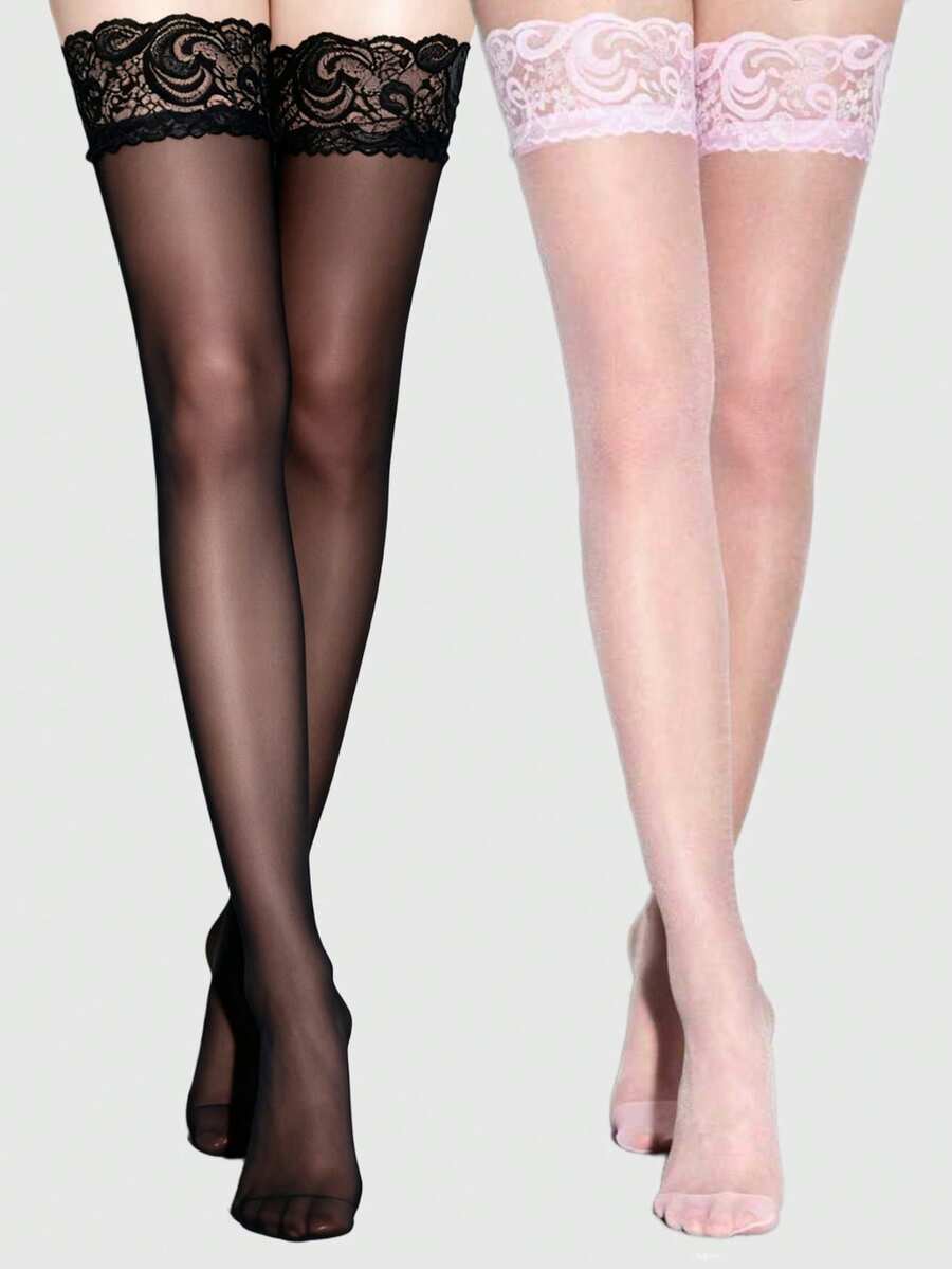Anime 2 pares de calcetines de encaje de ala ancha de estilo lindo, calcetines universitarios sexy negros y rosas, medias elásticas ultra finas y transpirables