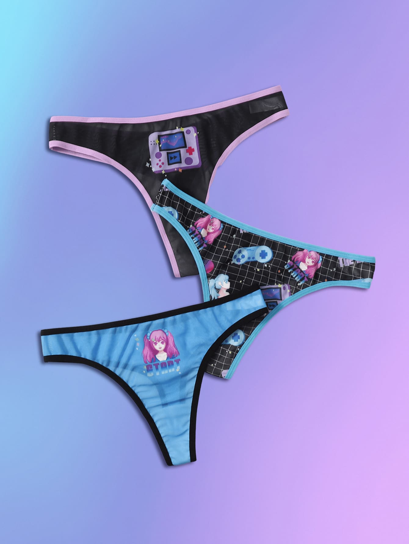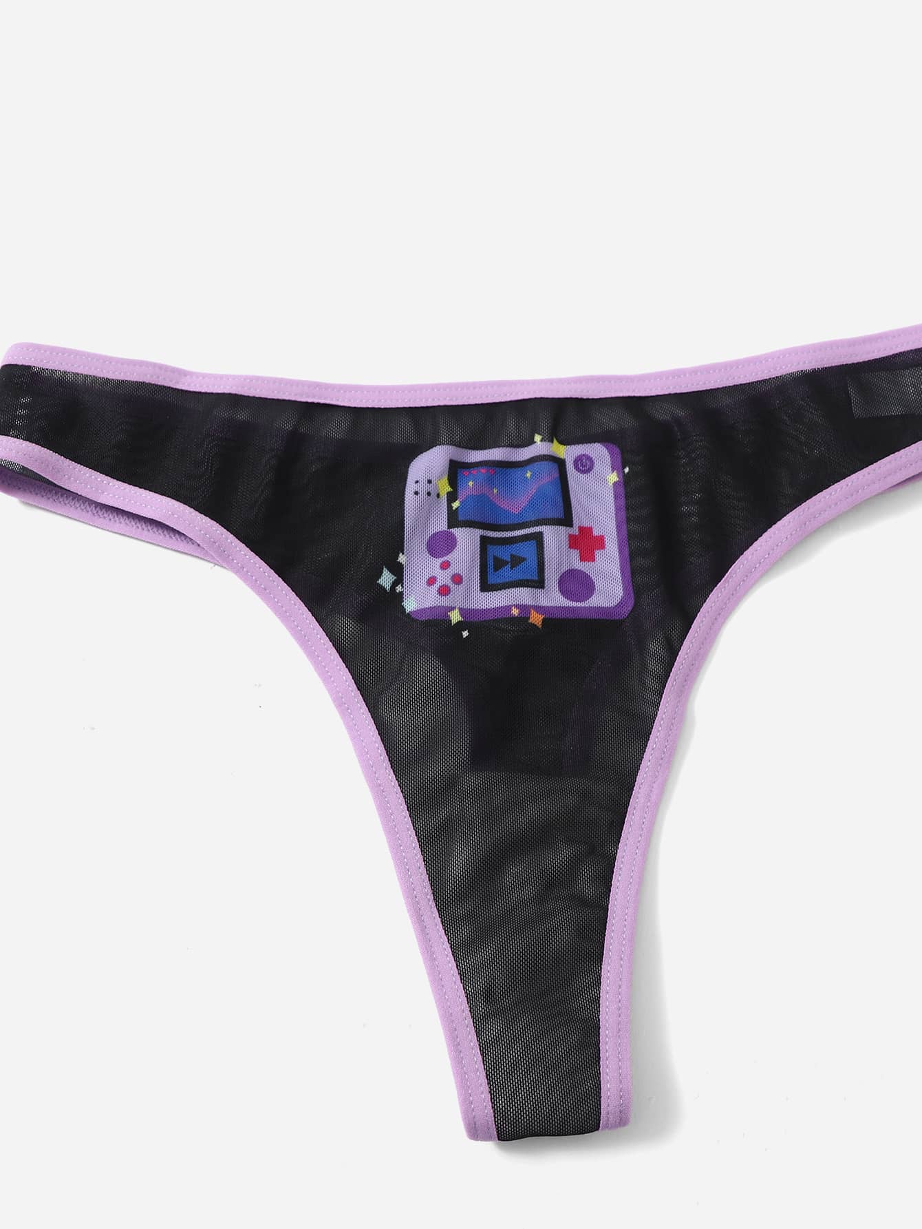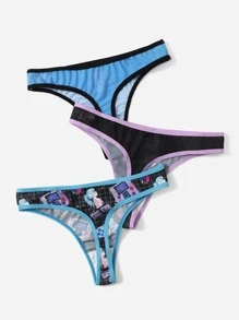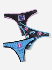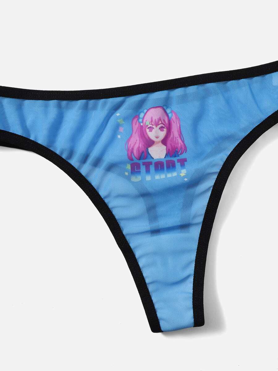 Anime 3 piezas Set bragas con letra con estampado de dibujos animados unido en contraste de malla